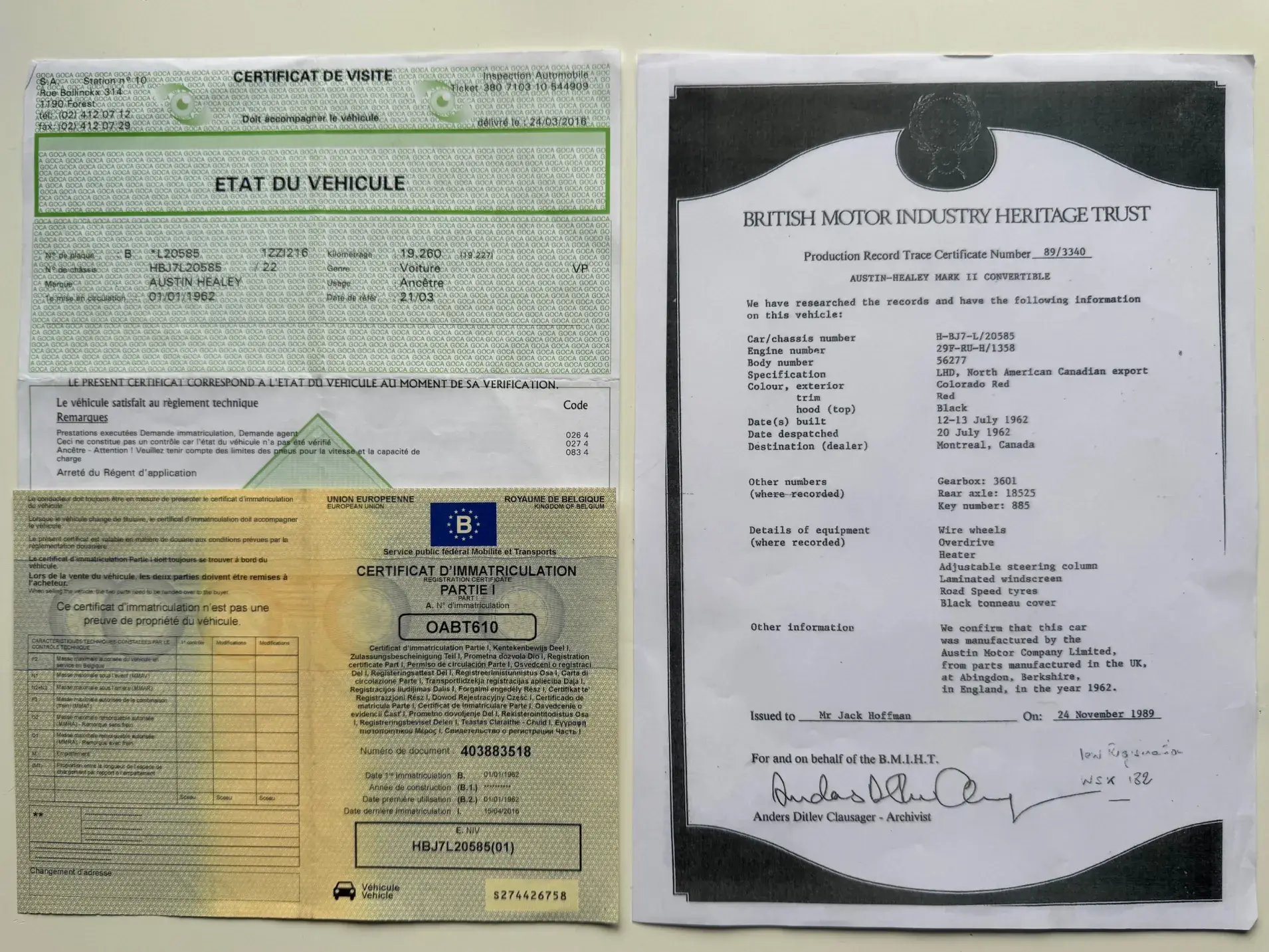 Notre Austin-Healey BJ7 Mark II est matching number et couleur, certifié par le British Motor Industry Heritage Trust.