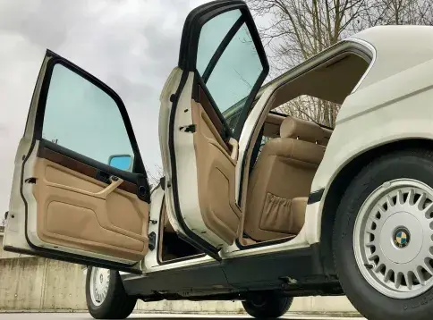 La BMW E32 730i est équipée du moteur essence six cylindres M30, réputé pour sa fiabilité. L’ ADN BMW est bien présent, dynamisme de la boîte manuelle et confort sont au rendez-vous.