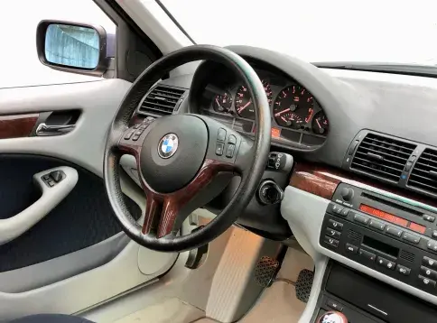 La BMW E46 en version 320i, 6 cylindres (2.171cc, 24v, 163cv) en ligne à la sonorité distincte et à la puissance équilibrée, est une berline de caractère à la conduite dynamique. A son volant, pas de doute, elle offre tout ce que l’on attend d’une BMW.