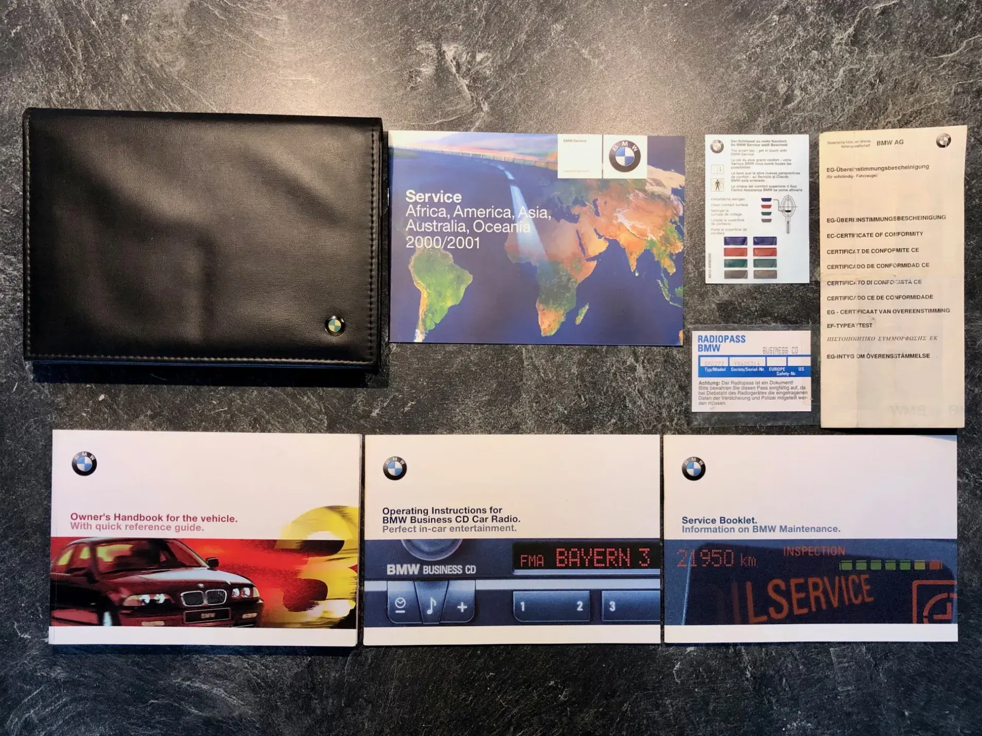 VIN ce02646 - Date de production 20/12/2000 - E46 (Série 3) - Type de carrosserie Berline - Moteur M54 - Couleur Stahl-blau (372) - Sellerie Tissu "Raute"/bleu marine (E3DL)