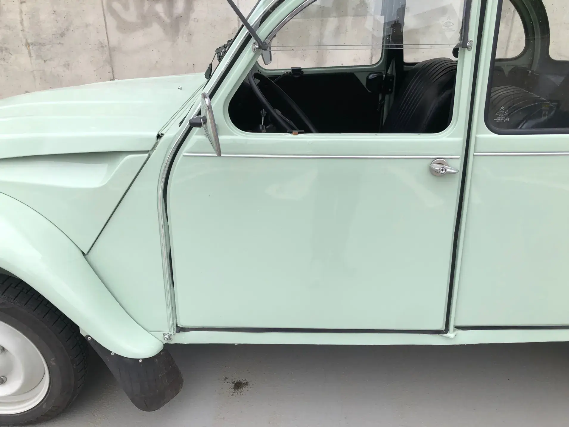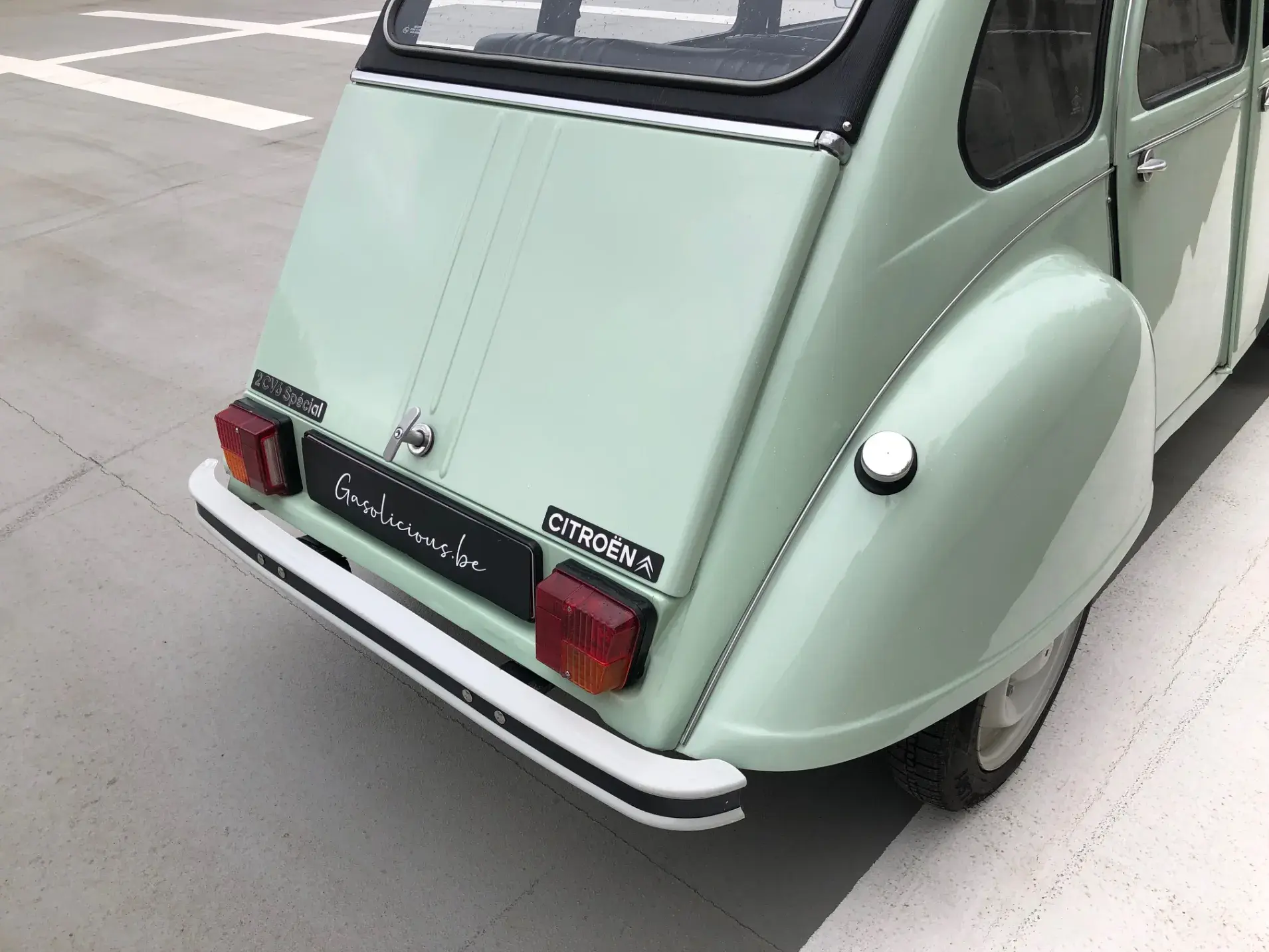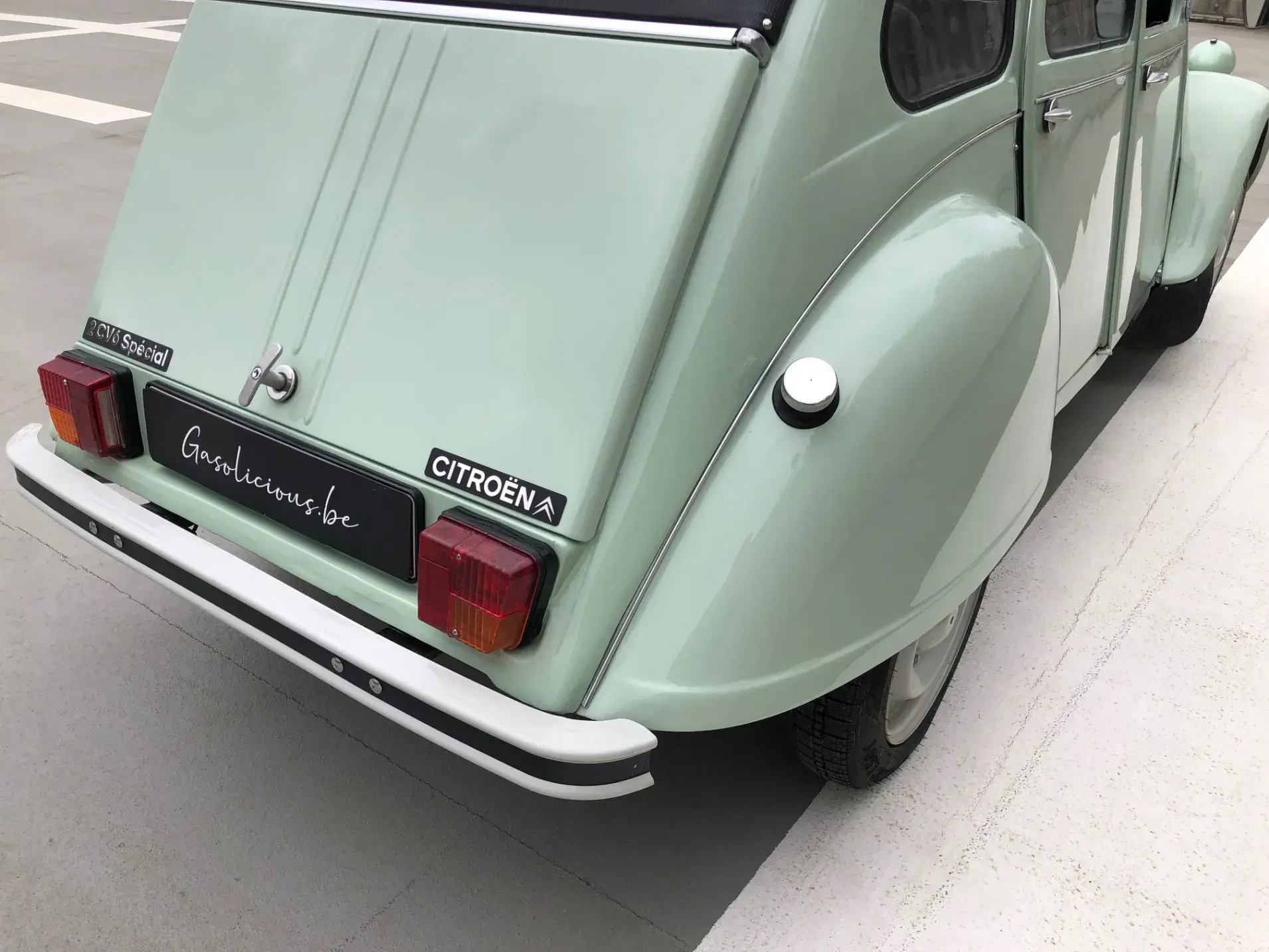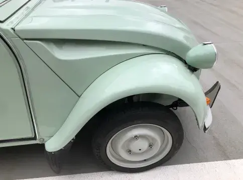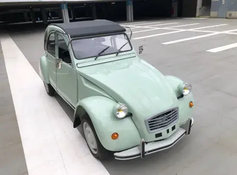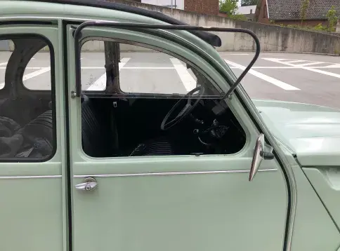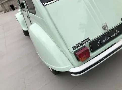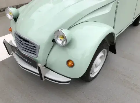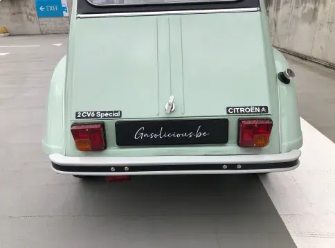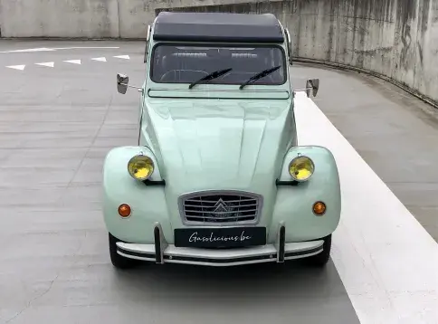 Cette 2CV date de 1989, il s’agit d’une Spécial reconnaissable à ses phares ronds, elle a été livrée en aout 1989 en Belgique et n'a jamais quitté le pays. Le vert Jade lui va à merveille ! Cet exemplaire ne souffre d’aucune critique, elle a été restaurée depuis le châssis, roule et se comporte parfaitement.