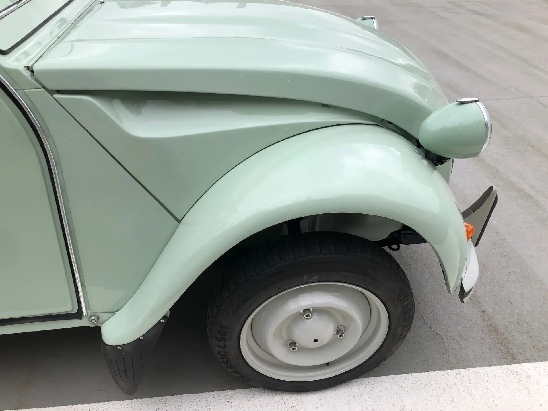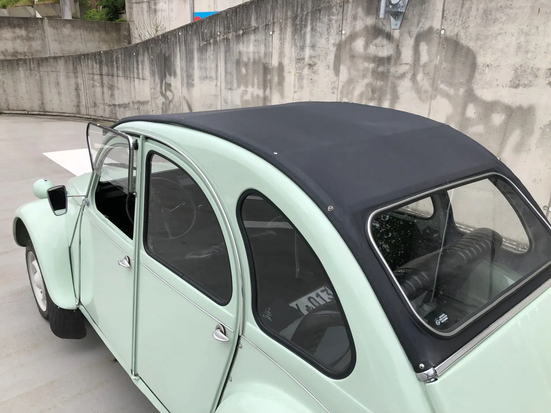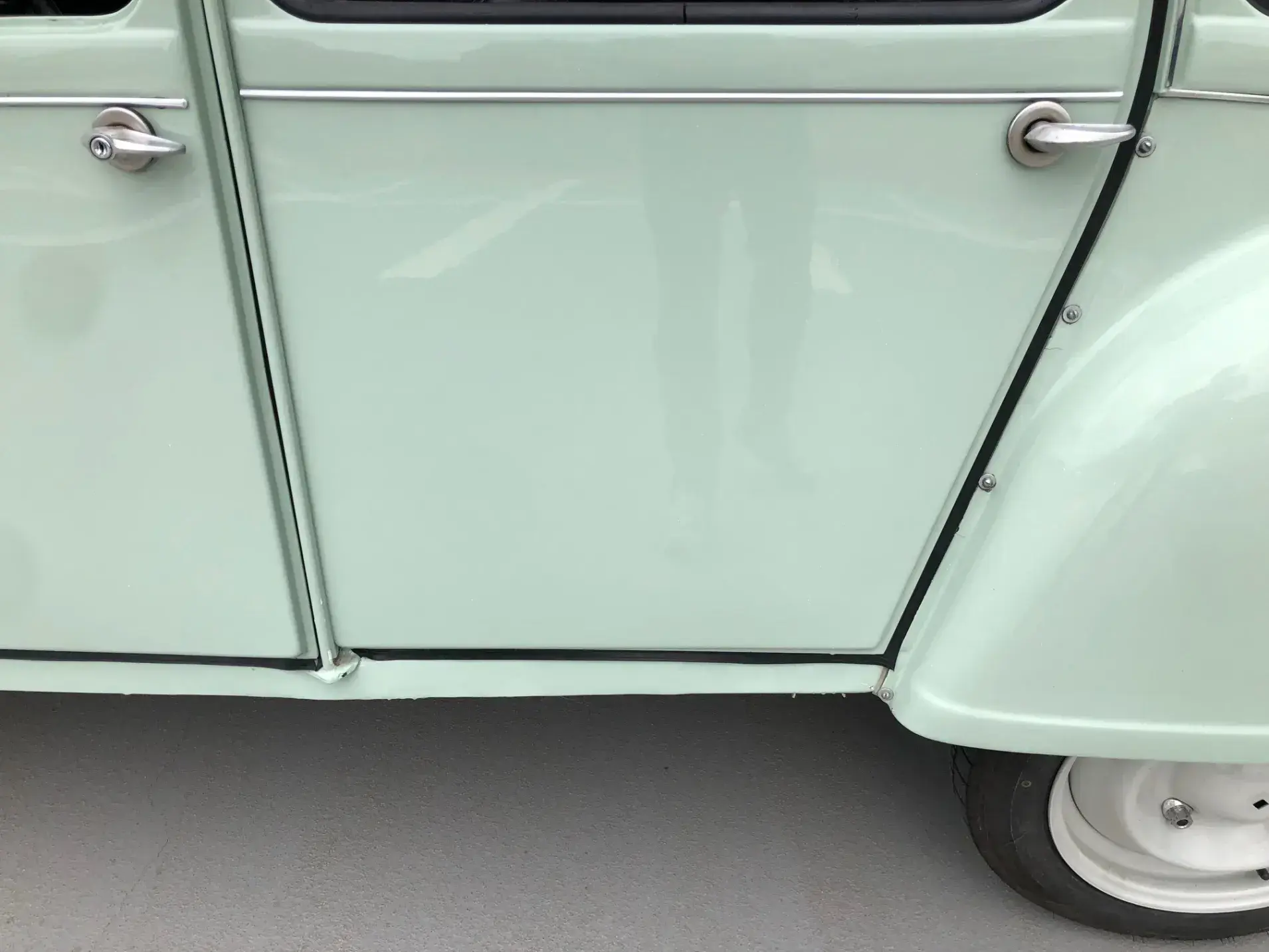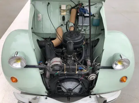 Cette 2CV date de 1989, il s’agit d’une Spécial reconnaissable à ses phares ronds, elle a été livrée en aout 1989 en Belgique et n'a jamais quitté le pays. Le vert Jade lui va à merveille ! Cet exemplaire ne souffre d’aucune critique, elle a été restaurée depuis le châssis, roule et se comporte parfaitement.
