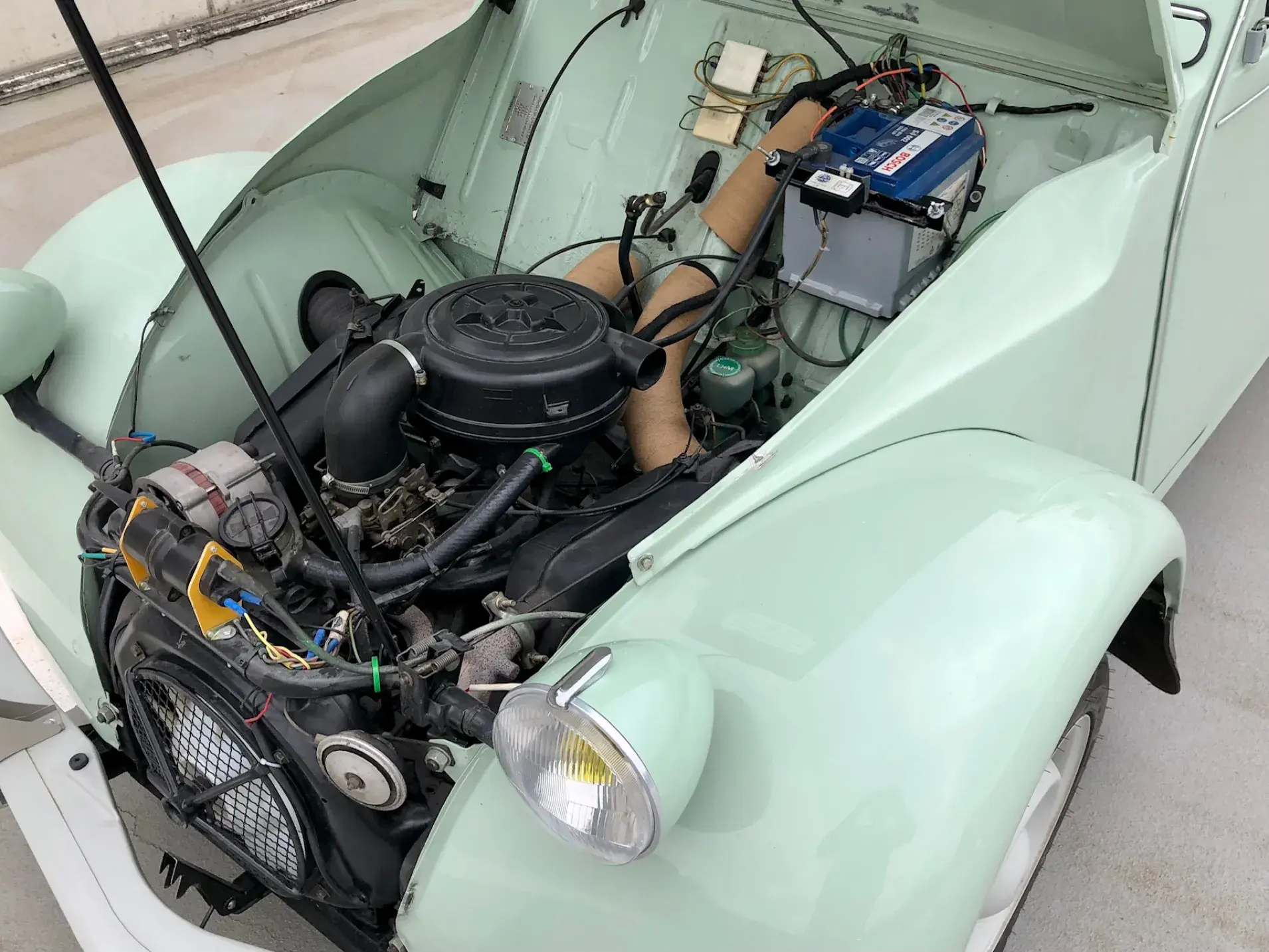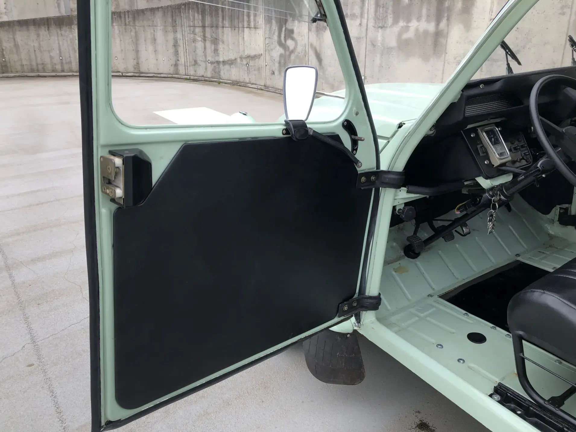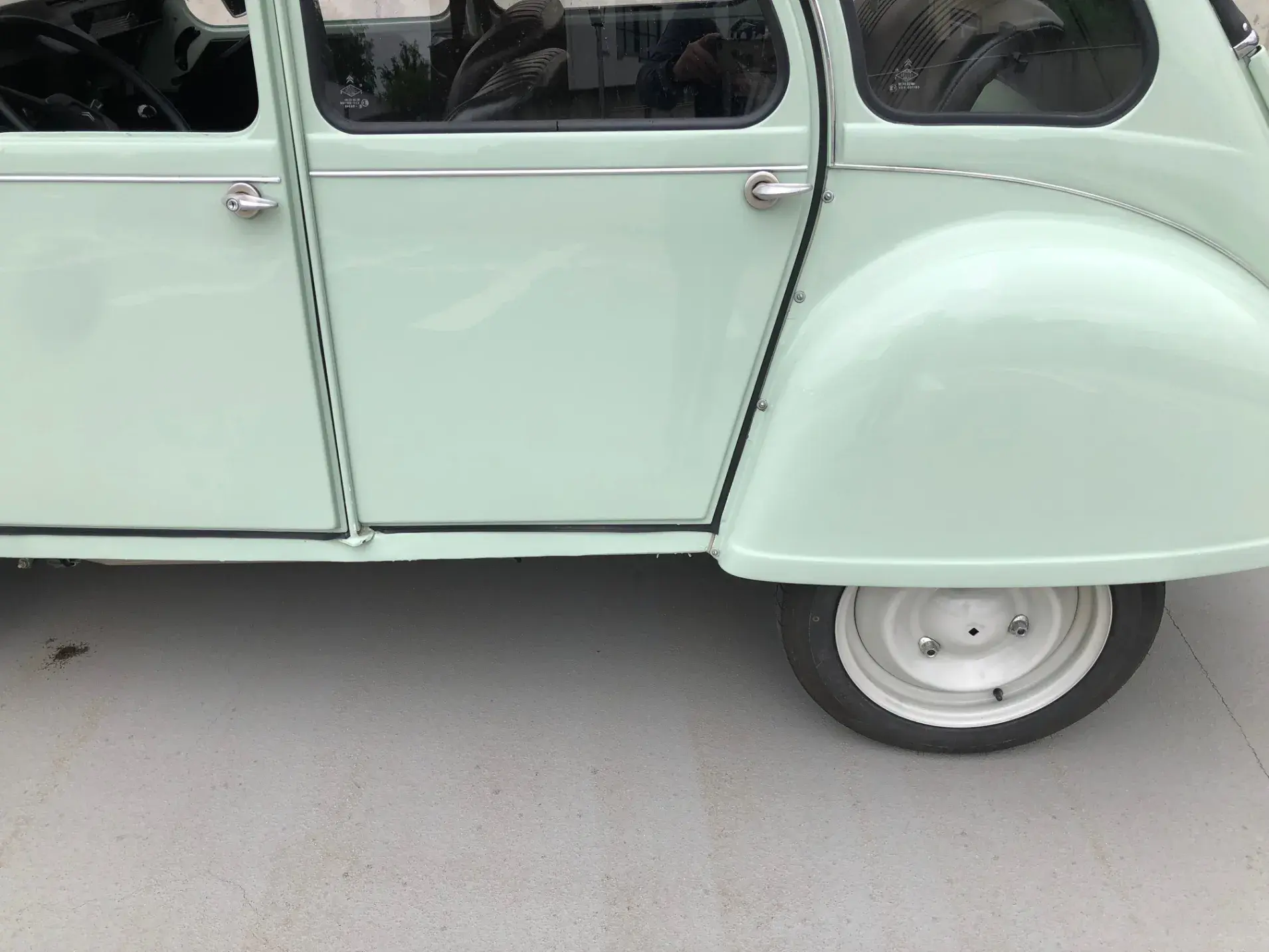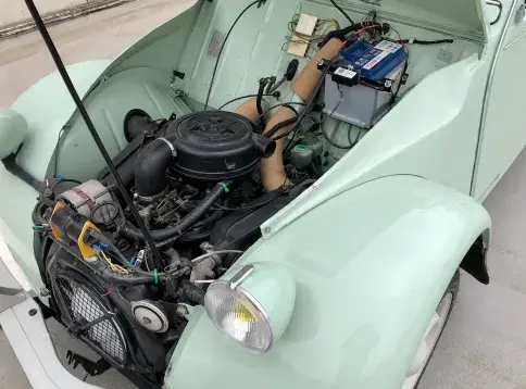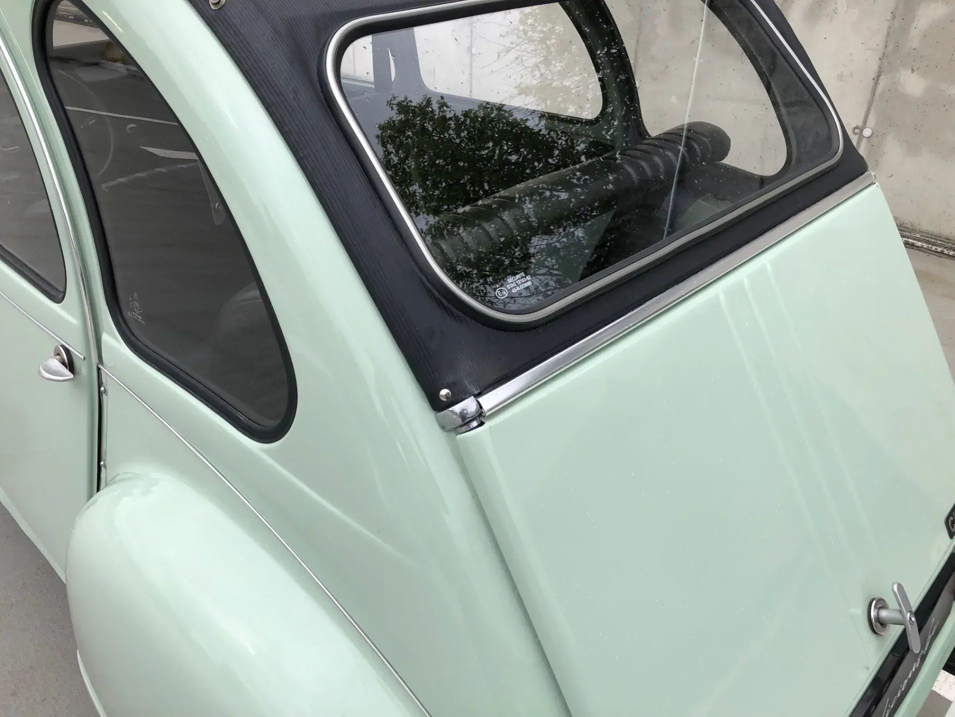 Cette 2CV date de 1989, il s’agit d’une Spécial reconnaissable à ses phares ronds, elle a été livrée en aout 1989 en Belgique et n'a jamais quitté le pays. Le vert Jade lui va à merveille ! Cet exemplaire ne souffre d’aucune critique, elle a été restaurée depuis le châssis, roule et se comporte parfaitement.