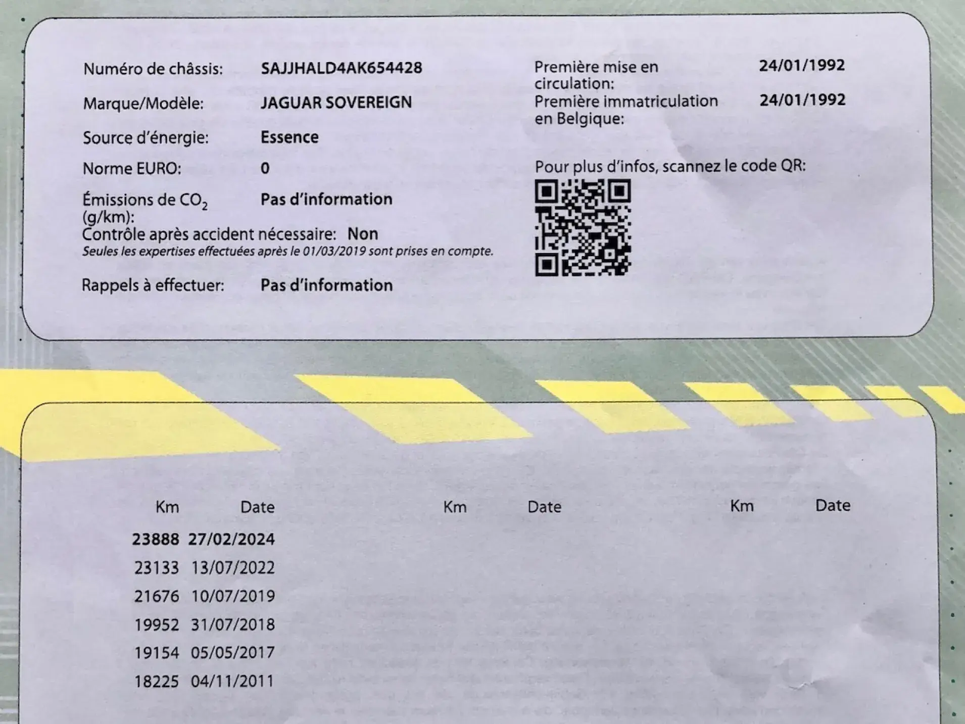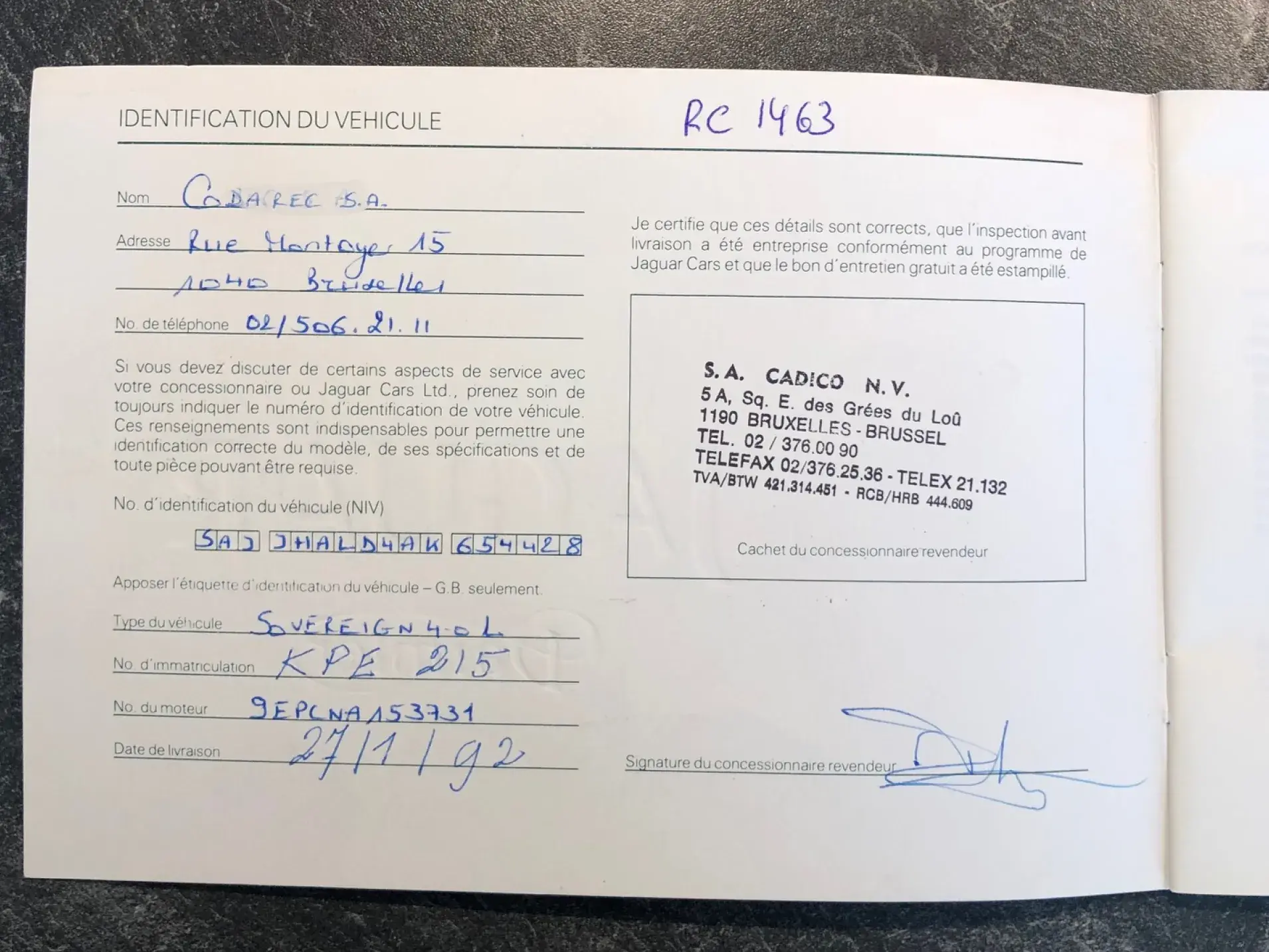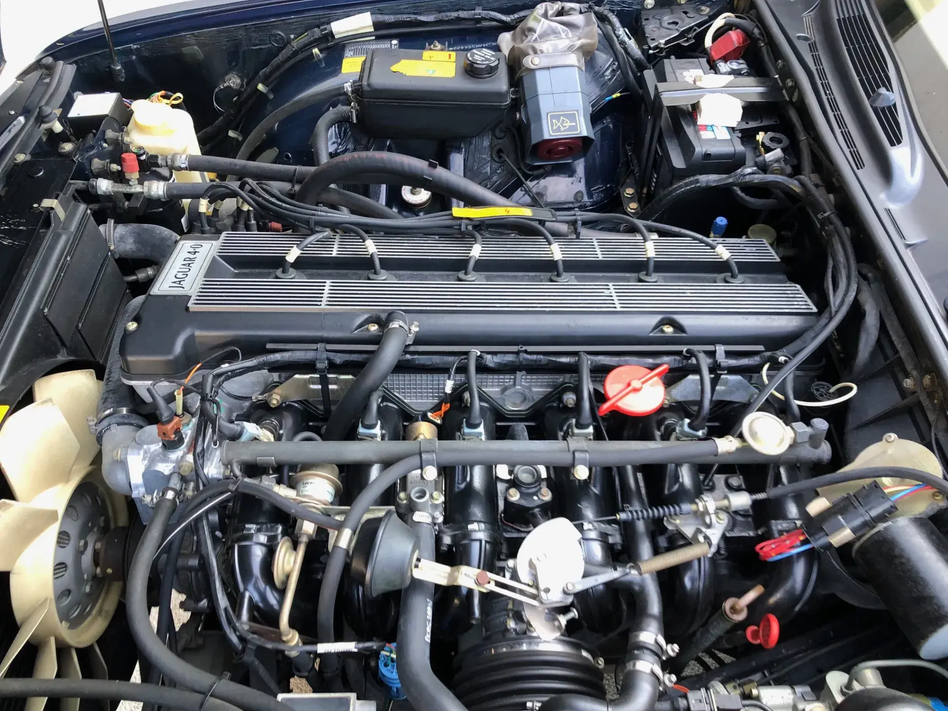 Notre exemplaire, livré neuf par Jaguar Bruxelles en janvier 1992, en finition Sovereign est équipé du moteur AJ6 de 3980 cc en aluminium, 24 soupapes et double arbre à cames, développant 223 chevaux. Toute la littérature de bord et le certificat de conformité sont présents.