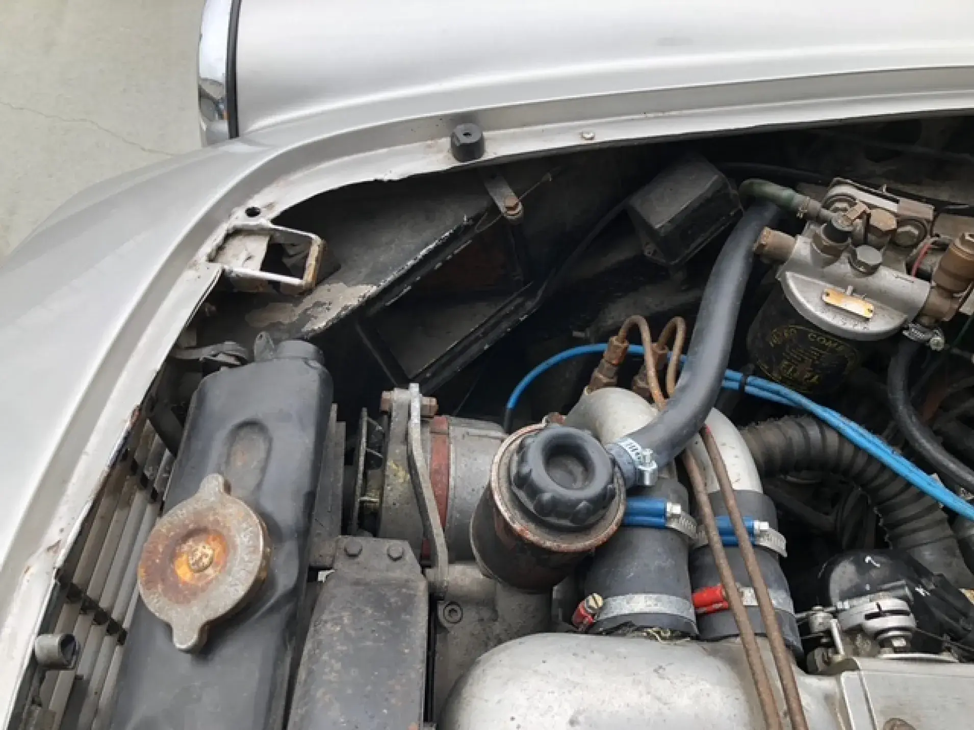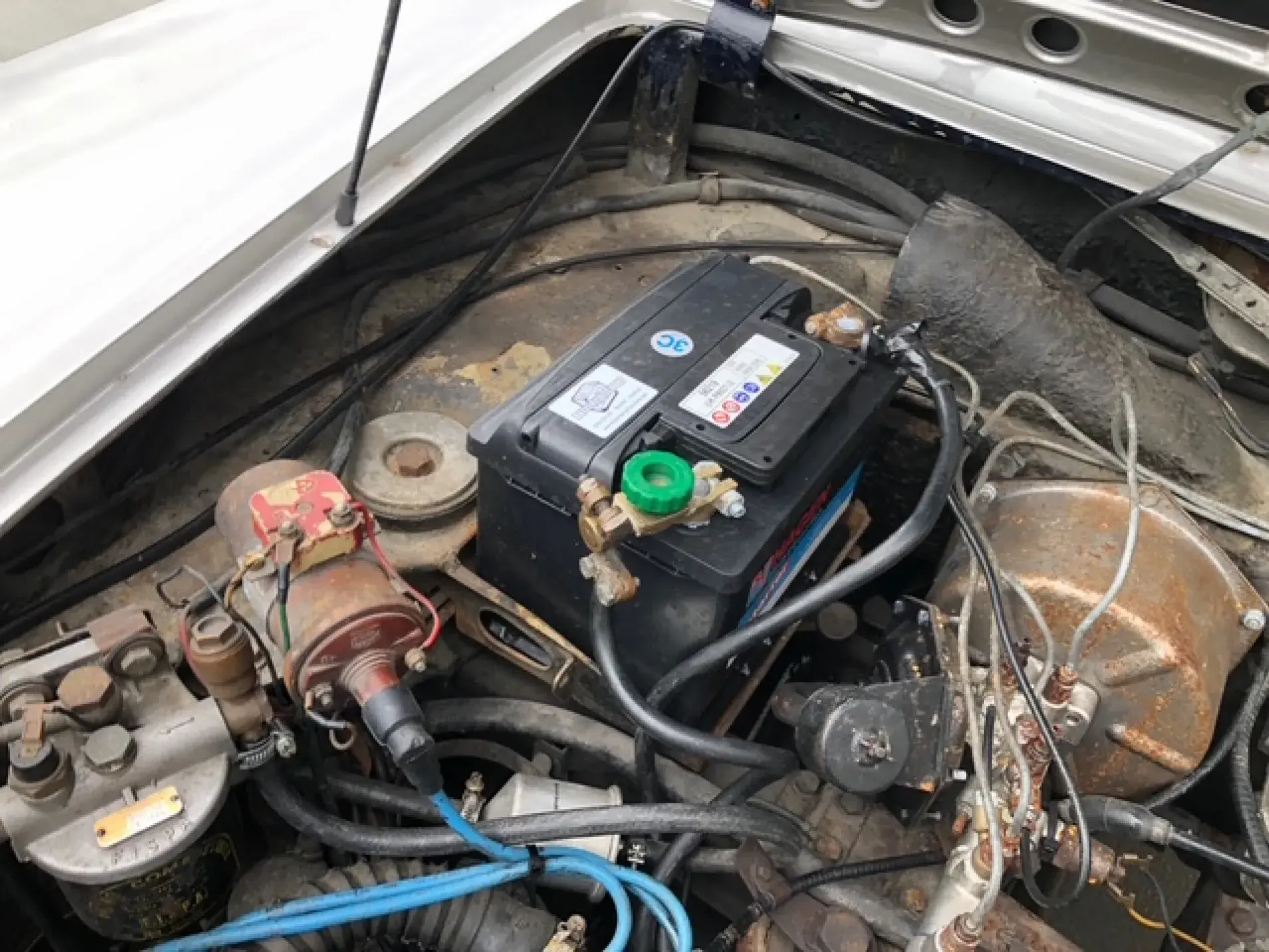 État général : Ce coupé présente une base saine, complète, sans corrosion structurelle majeure. L’intérieur est d’origine, avec sellerie et planche de bord bien conservés.