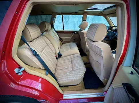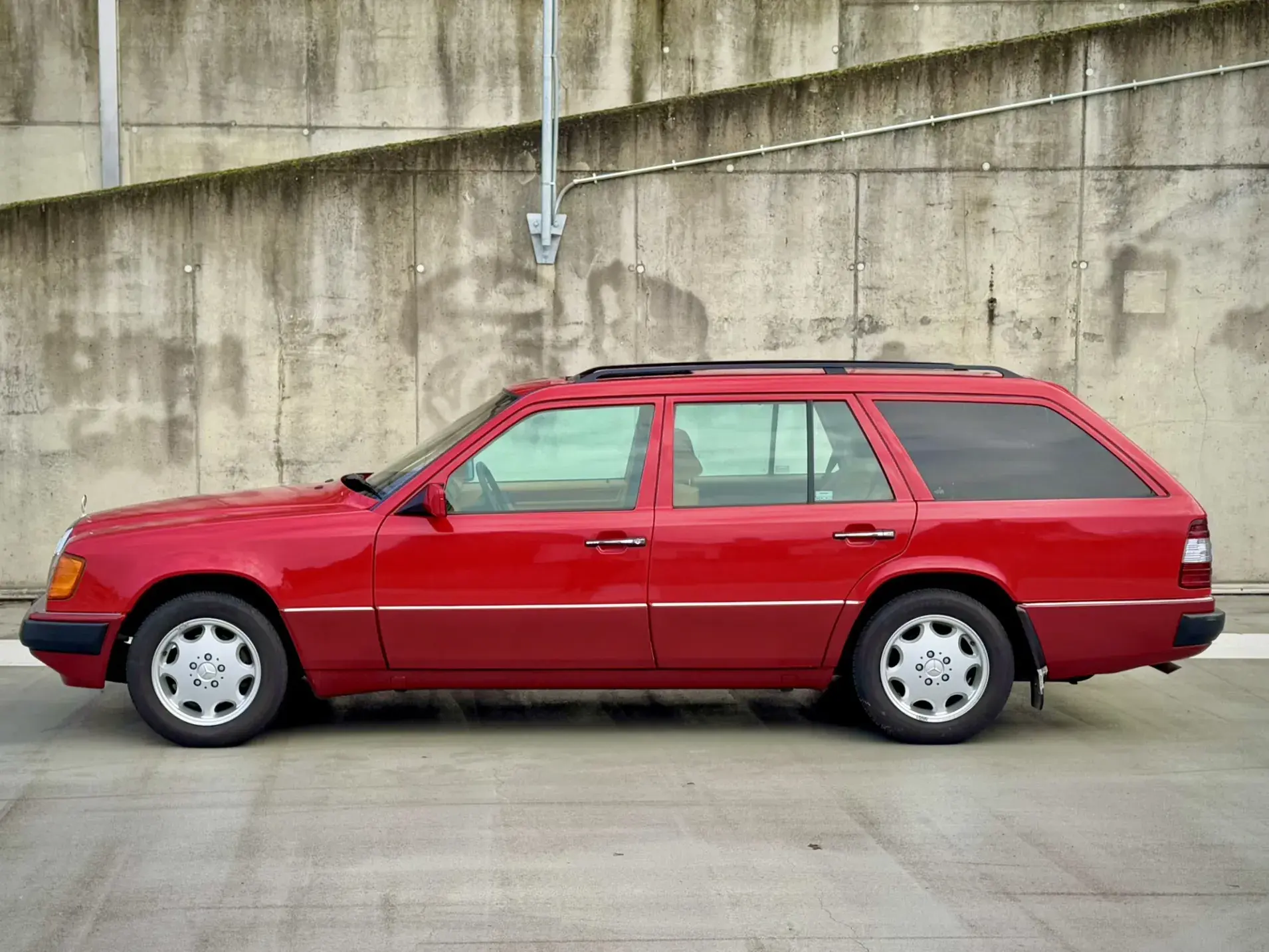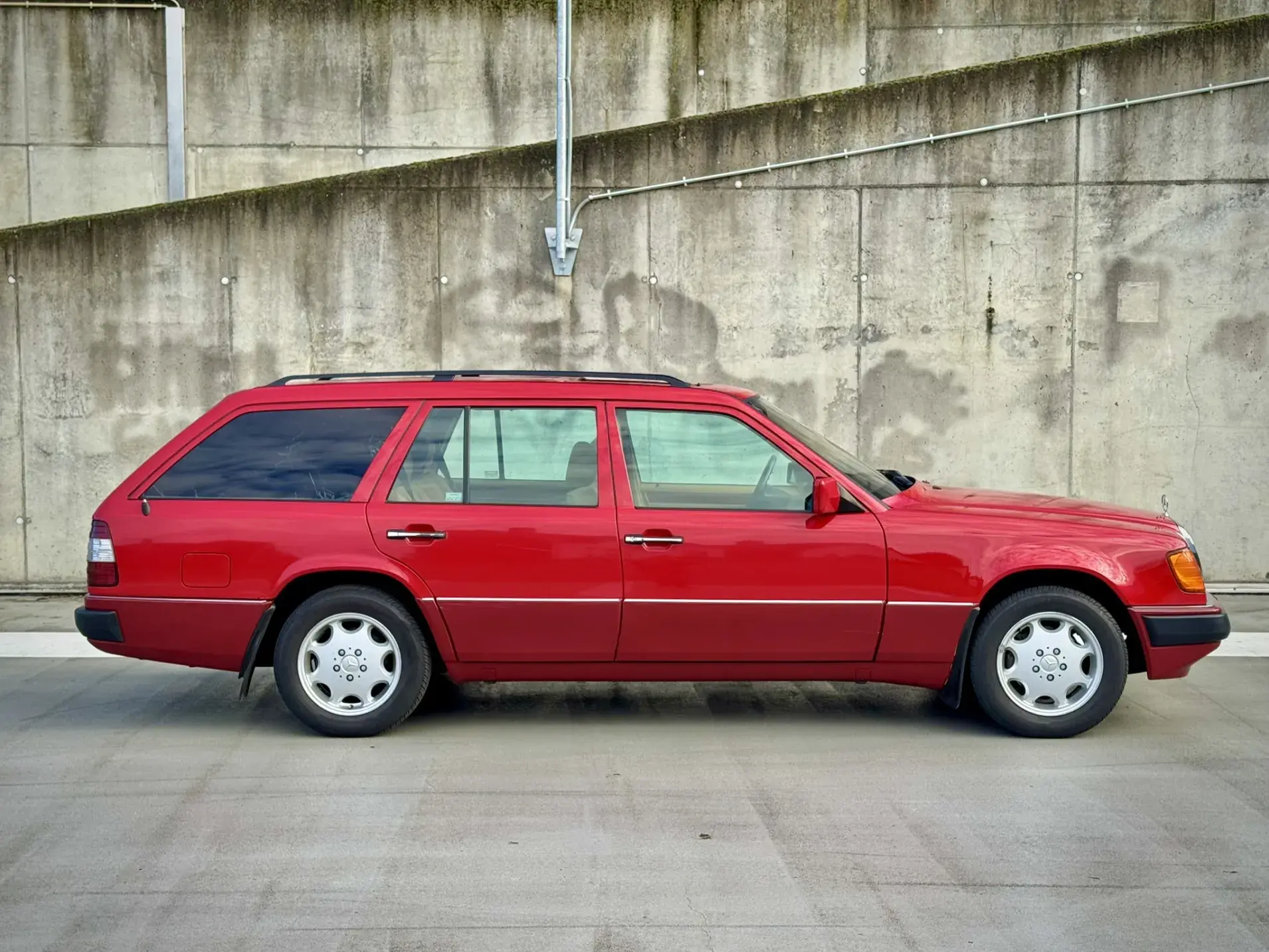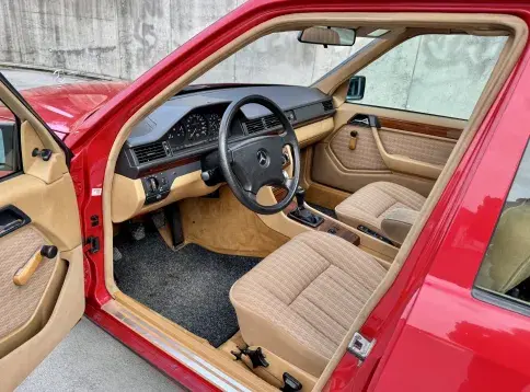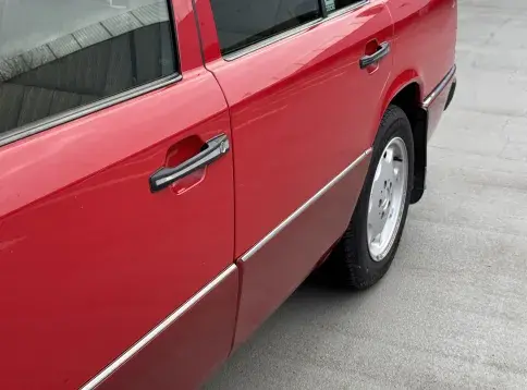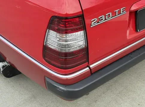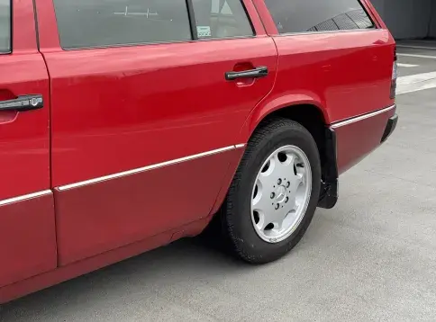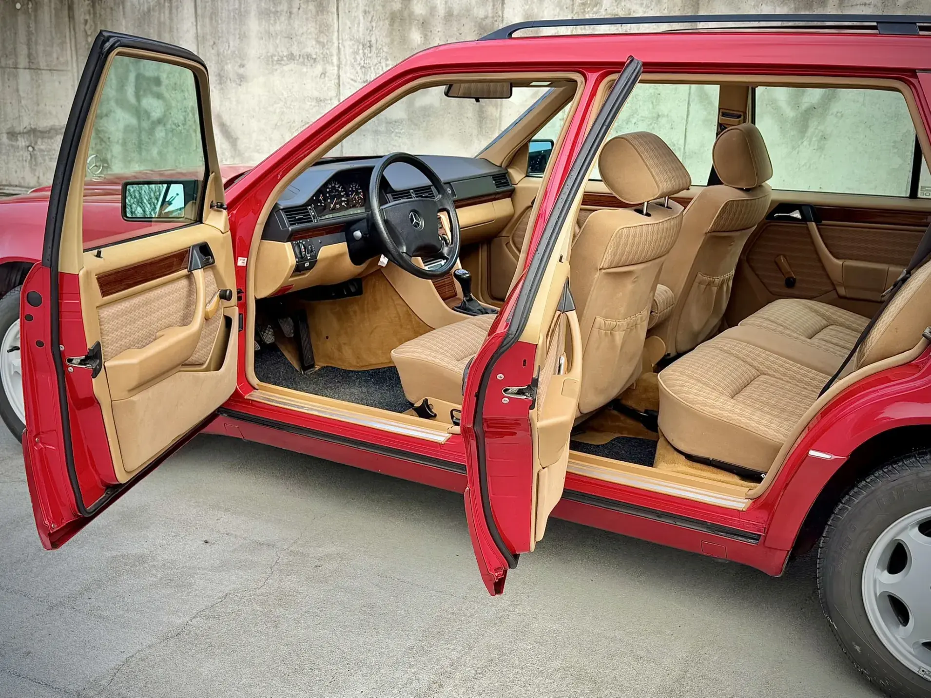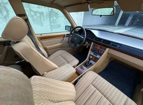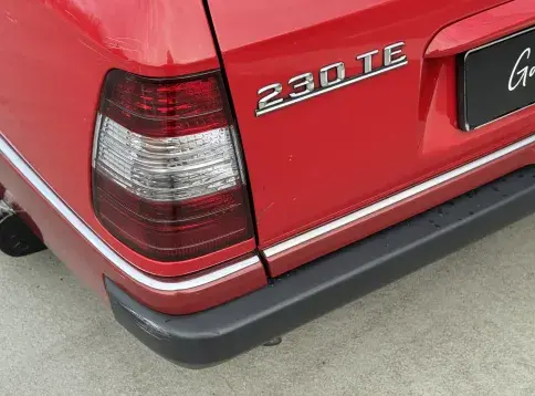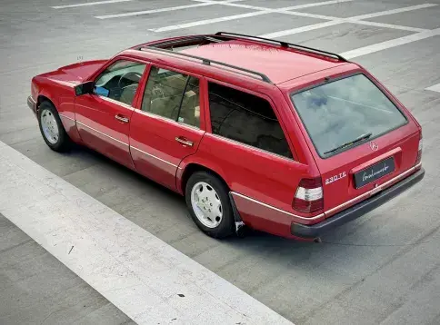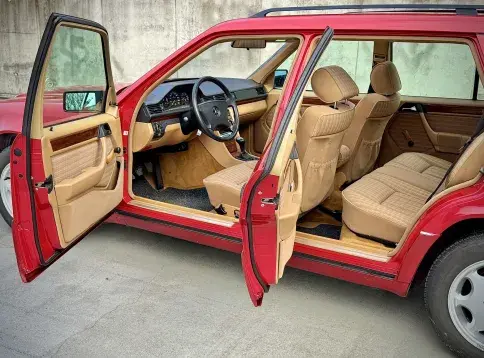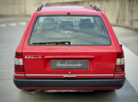 Formidable voiture de collection à tout faire, la Mercedes W124 break (T-Modell) s’impose comme l’un des grands classiques de l’étoile : robuste, confortable et conçue pour durer. Notre exemplaire 230 à boîte manuelle se distingue par sa configuration : Signalrot (568) associé à un intérieur en tissus crème (055), une combinaison vintage, complétée par le toit ouvrant électrique.