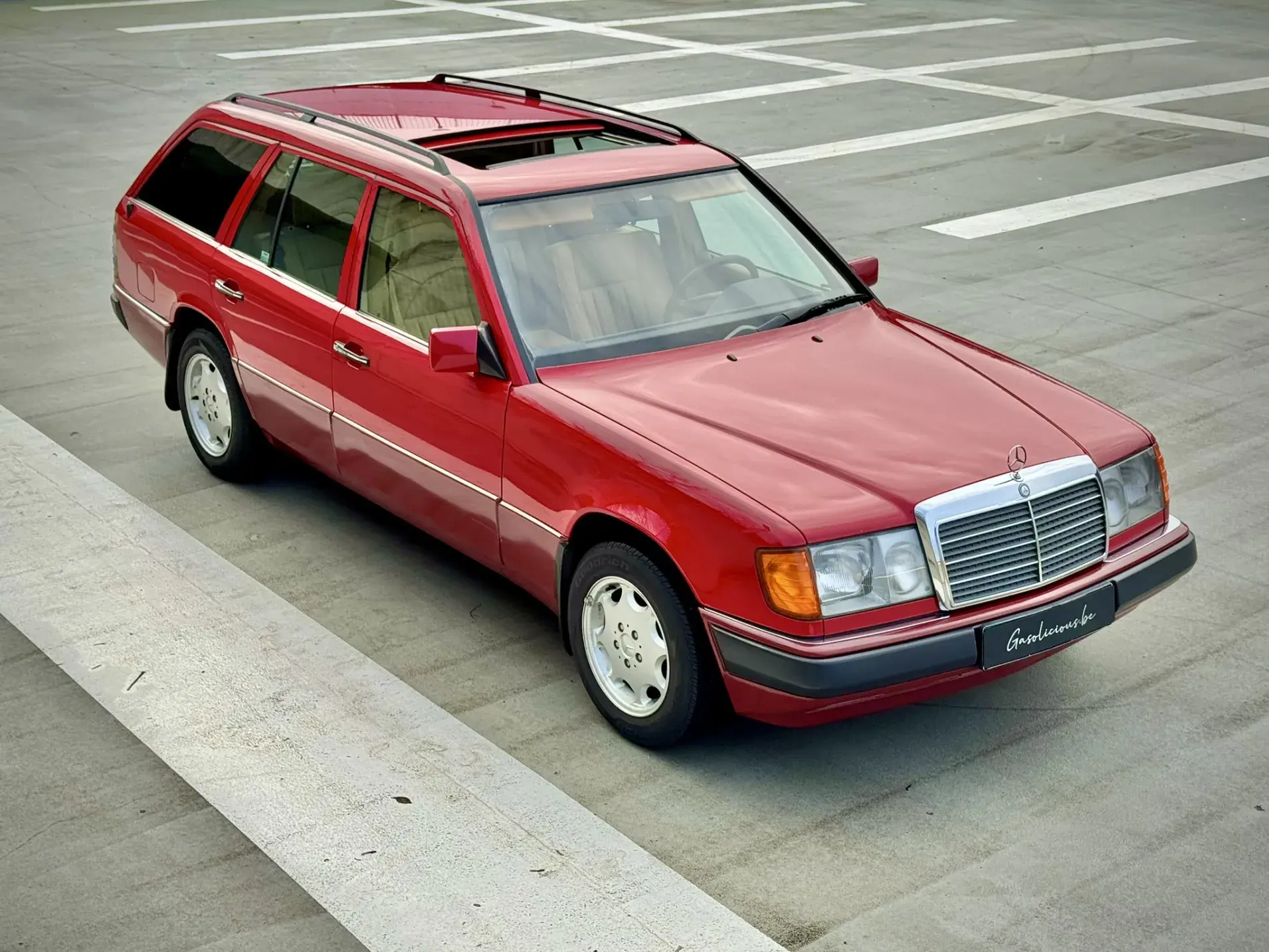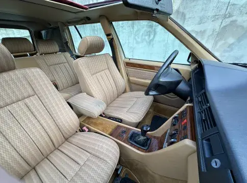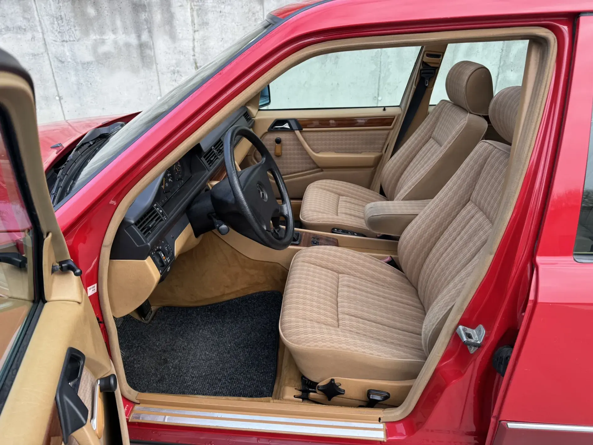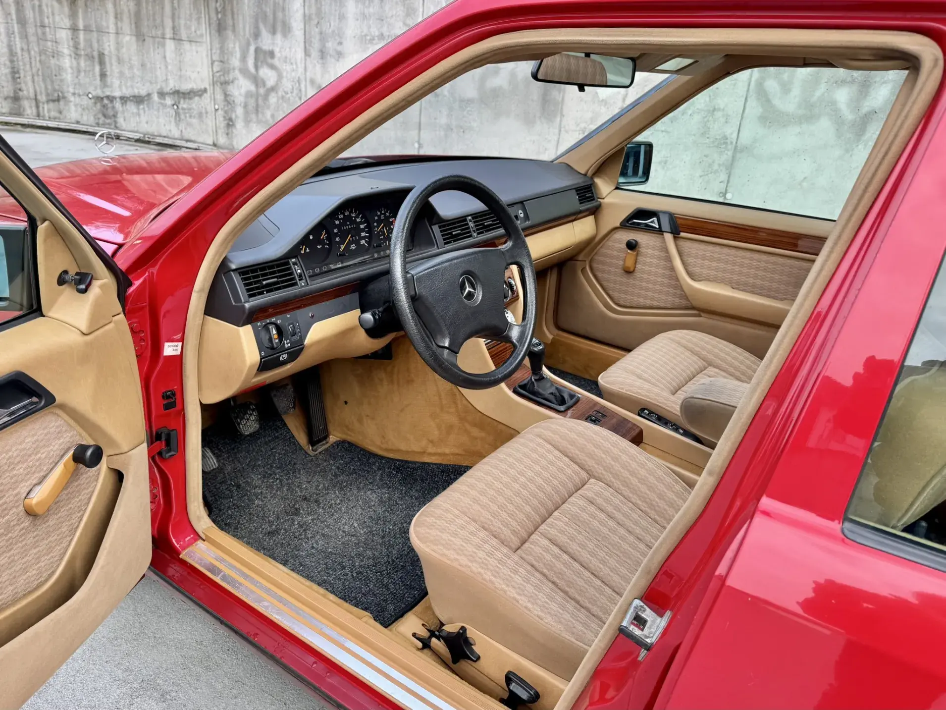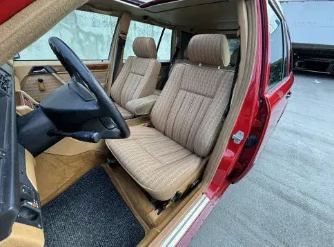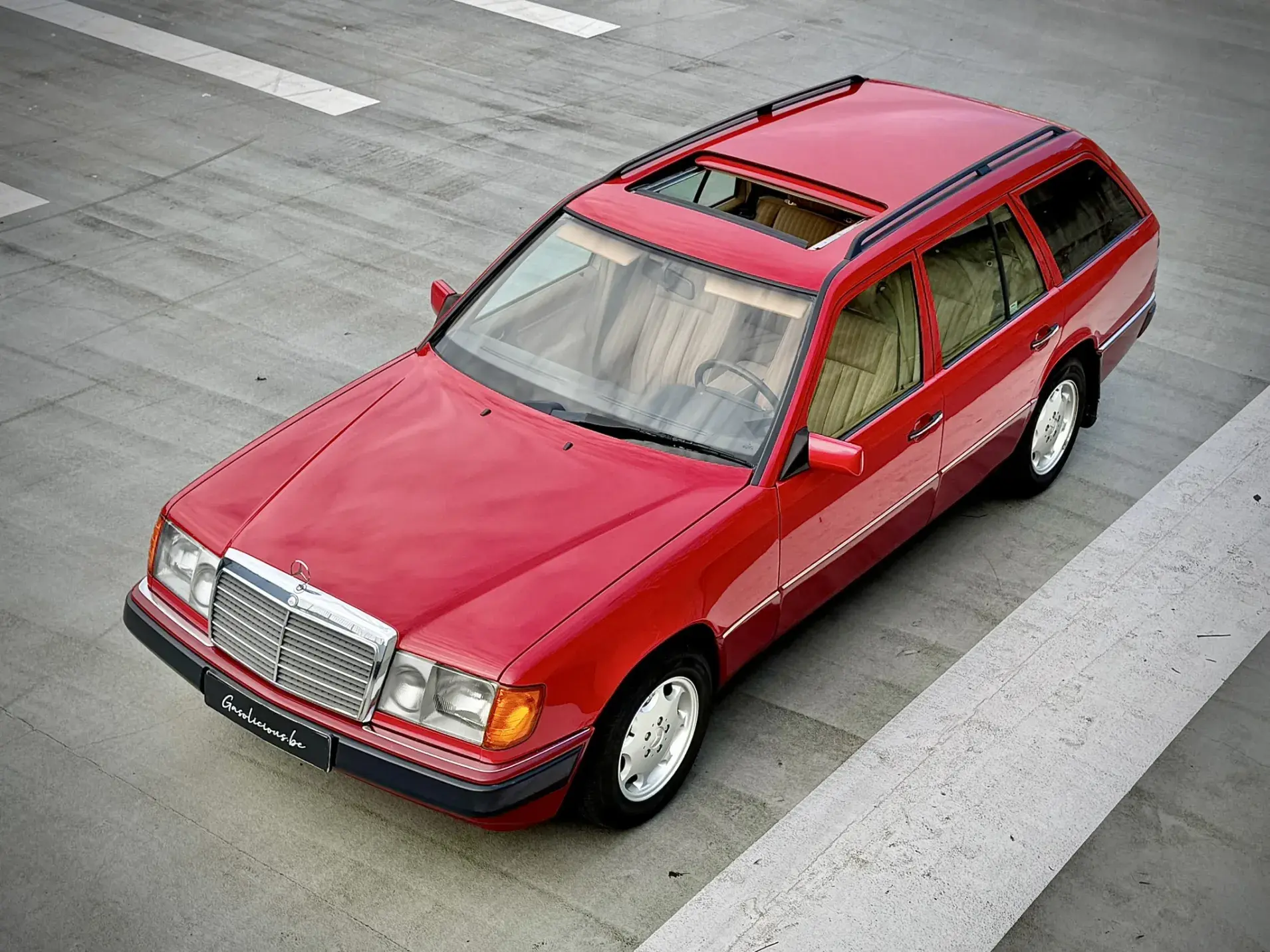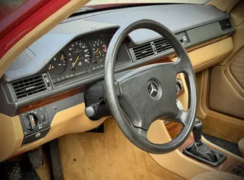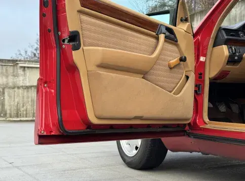 Formidable voiture de collection à tout faire, la Mercedes W124 break (T-Modell) s’impose comme l’un des grands classiques de l’étoile : robuste, confortable et conçue pour durer. Notre exemplaire 230 à boîte manuelle se distingue par sa configuration : Signalrot (568) associé à un intérieur en tissus crème (055), une combinaison vintage, complétée par le toit ouvrant électrique.