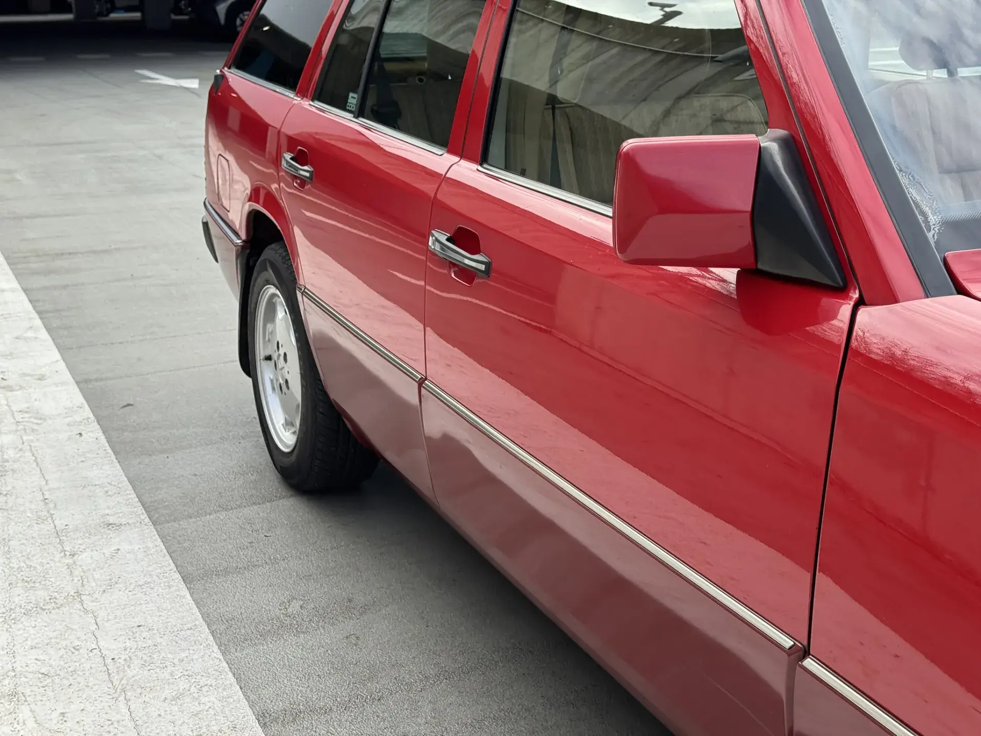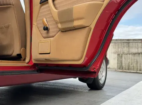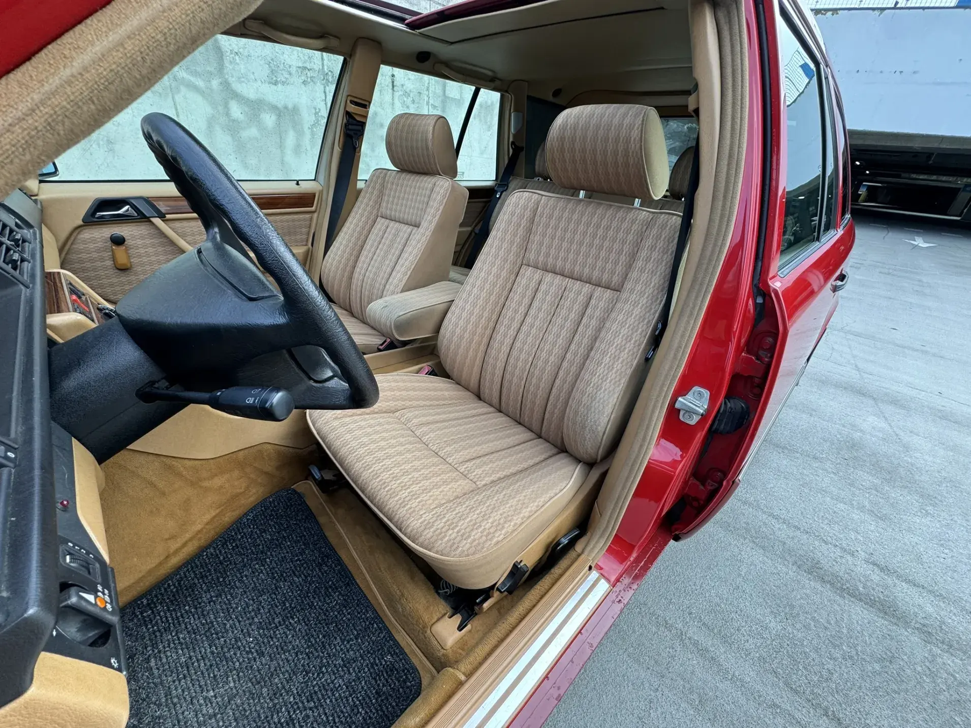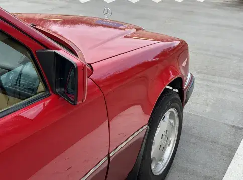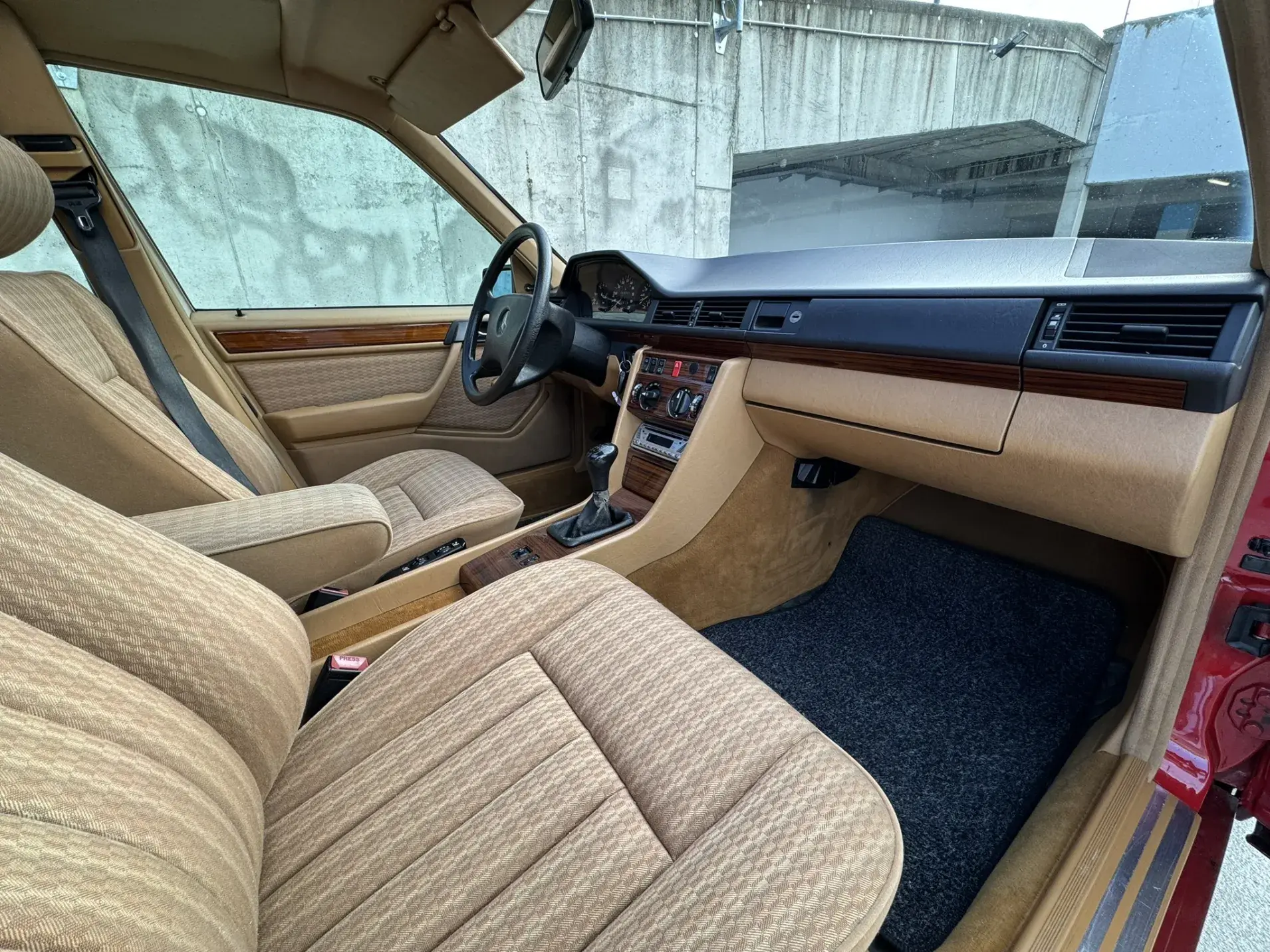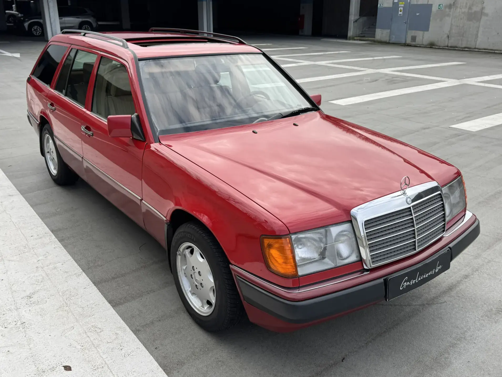 Formidable voiture de collection à tout faire, la Mercedes W124 break (T-Modell) s’impose comme l’un des grands classiques de l’étoile : robuste, confortable et conçue pour durer. Notre exemplaire 230 à boîte manuelle se distingue par sa configuration : Signalrot (568) associé à un intérieur en tissus crème (055), une combinaison vintage, complétée par le toit ouvrant électrique.