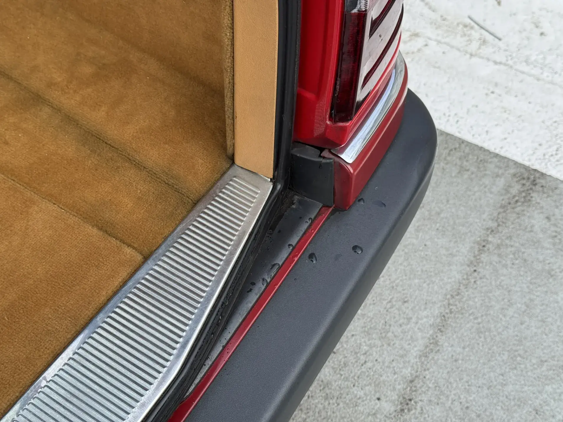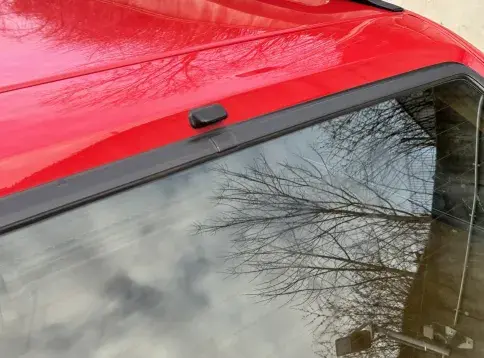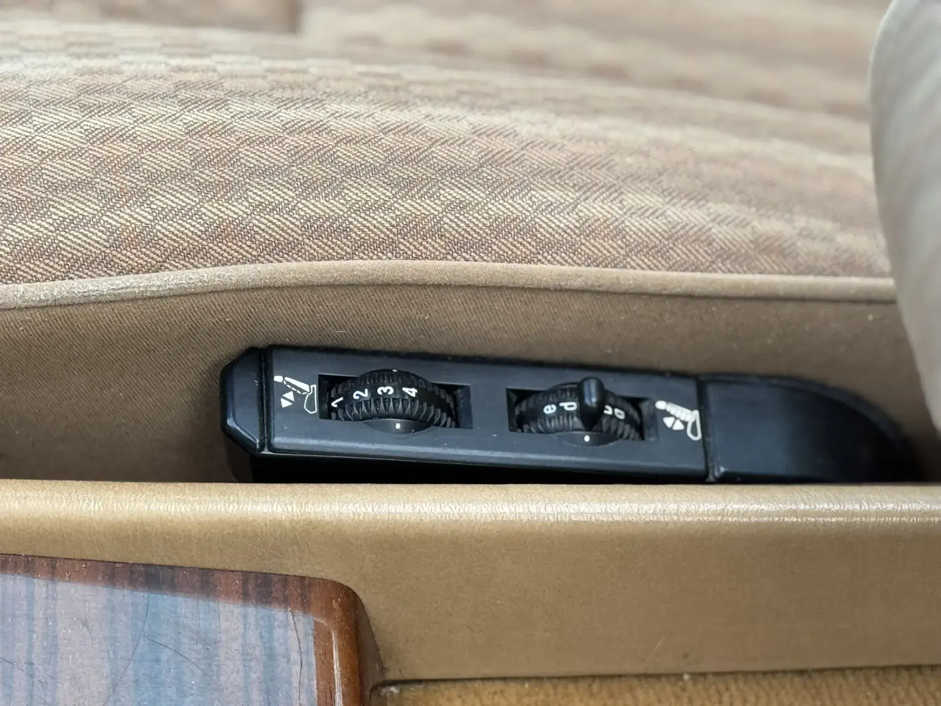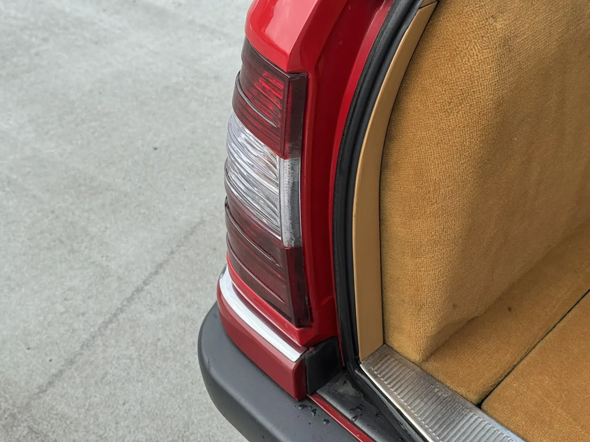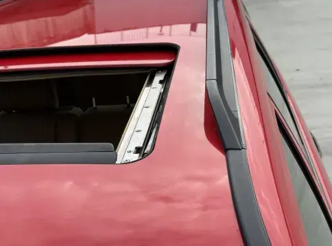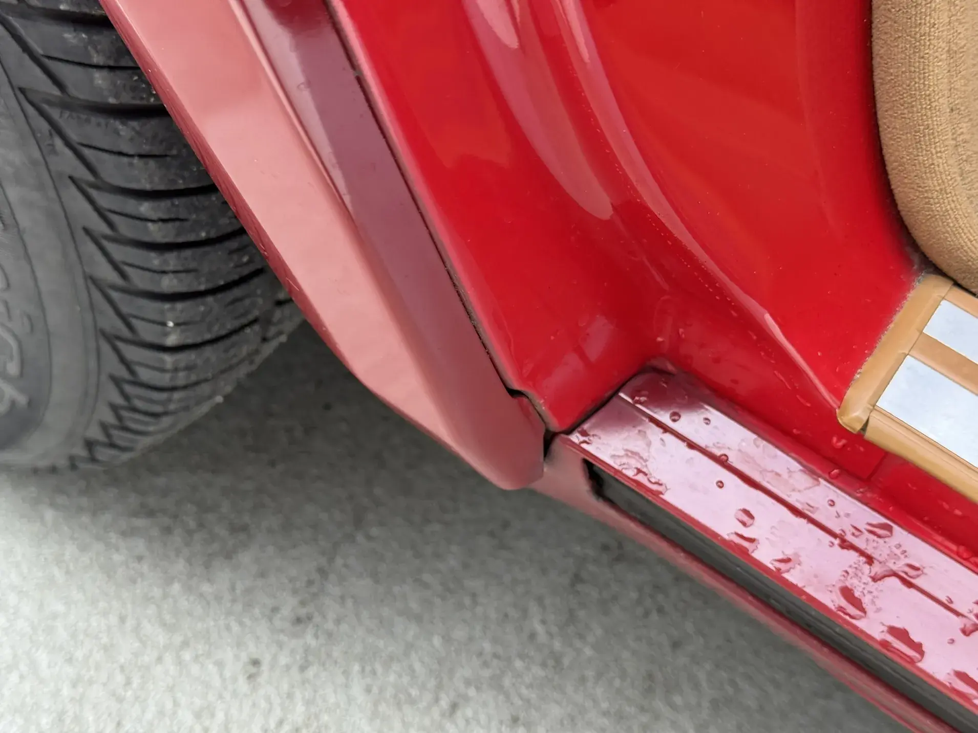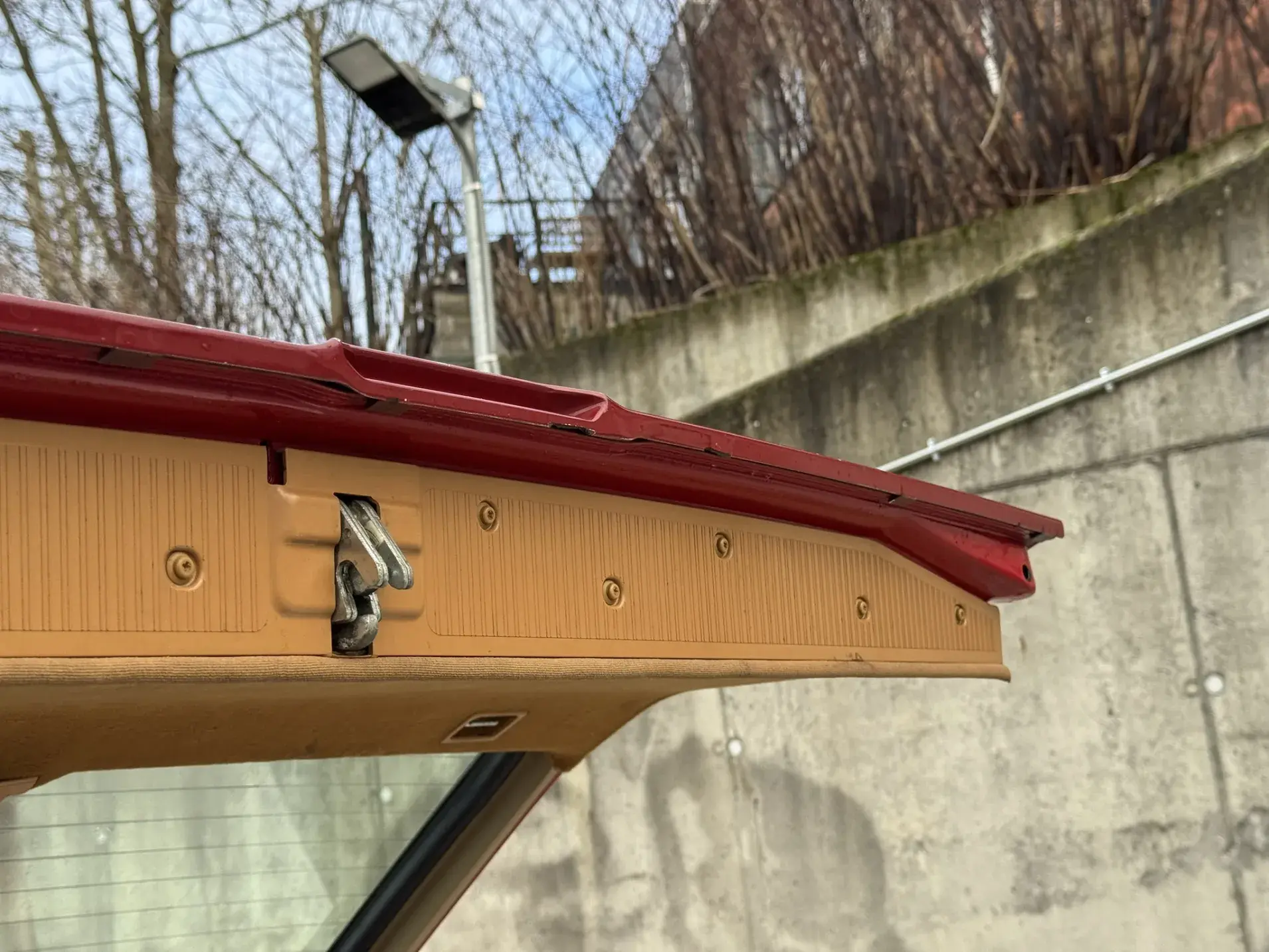 Notre exemplaire 230 à boîte manuelle se distingue par sa configuration : Signalrot (568) associé à un intérieur en tissus crème (055), une combinaison vintage, complétée par le toit ouvrant électrique.