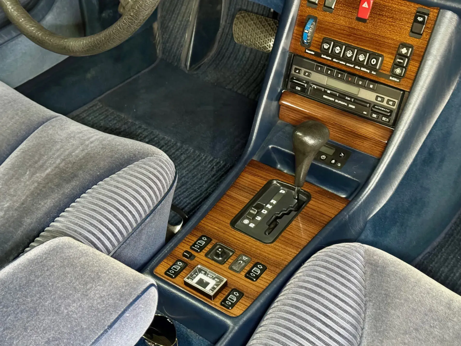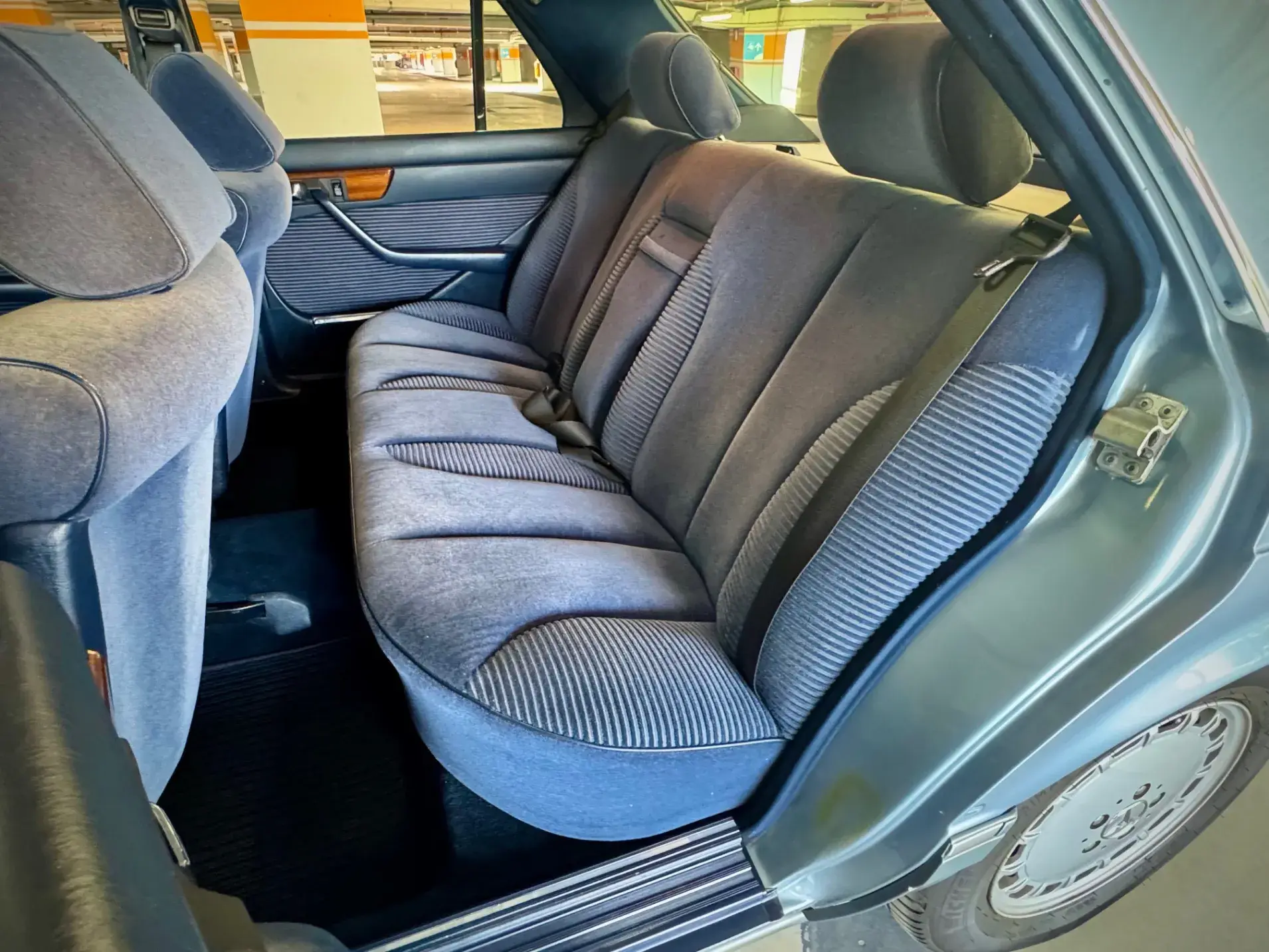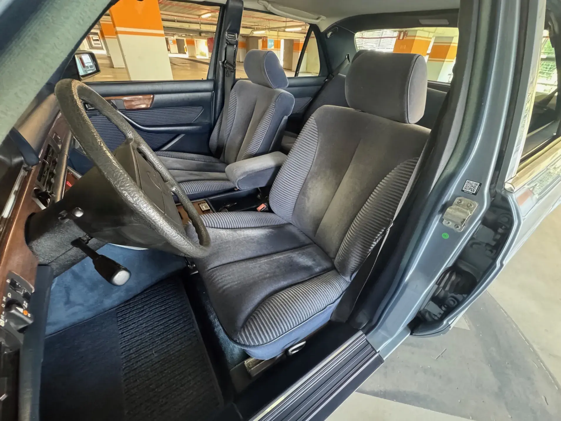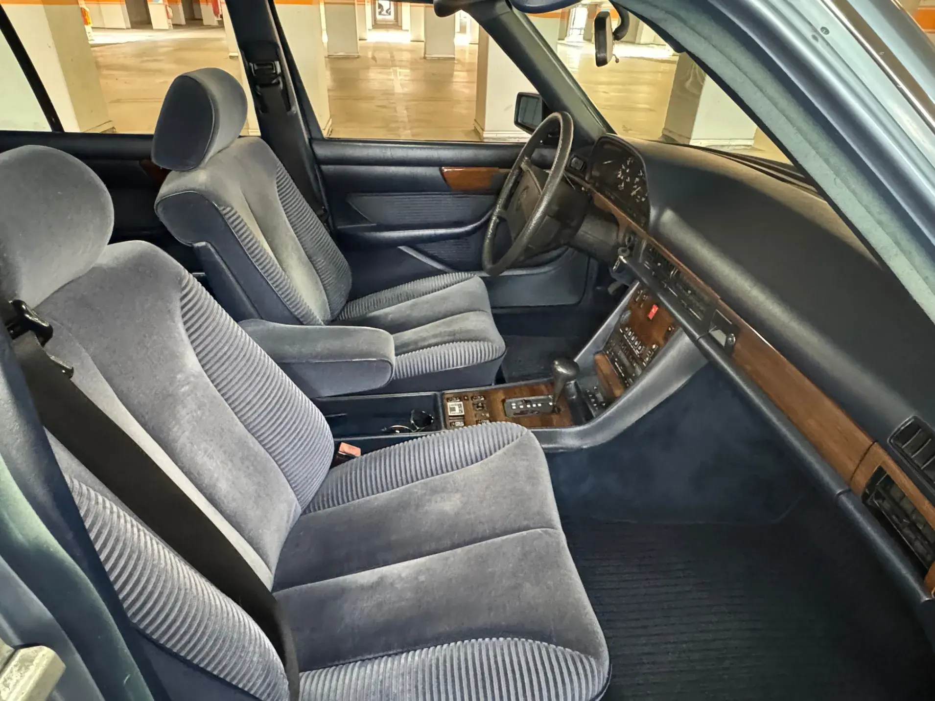 Notre Classe S W126 se distingue par une combinaison rare et élégante, dans un état d’origine très désirable. Diamantblau métallisé (code 355) et intérieur en velours bleu royal (code 972). L’ air conditionné est fonctionnel.