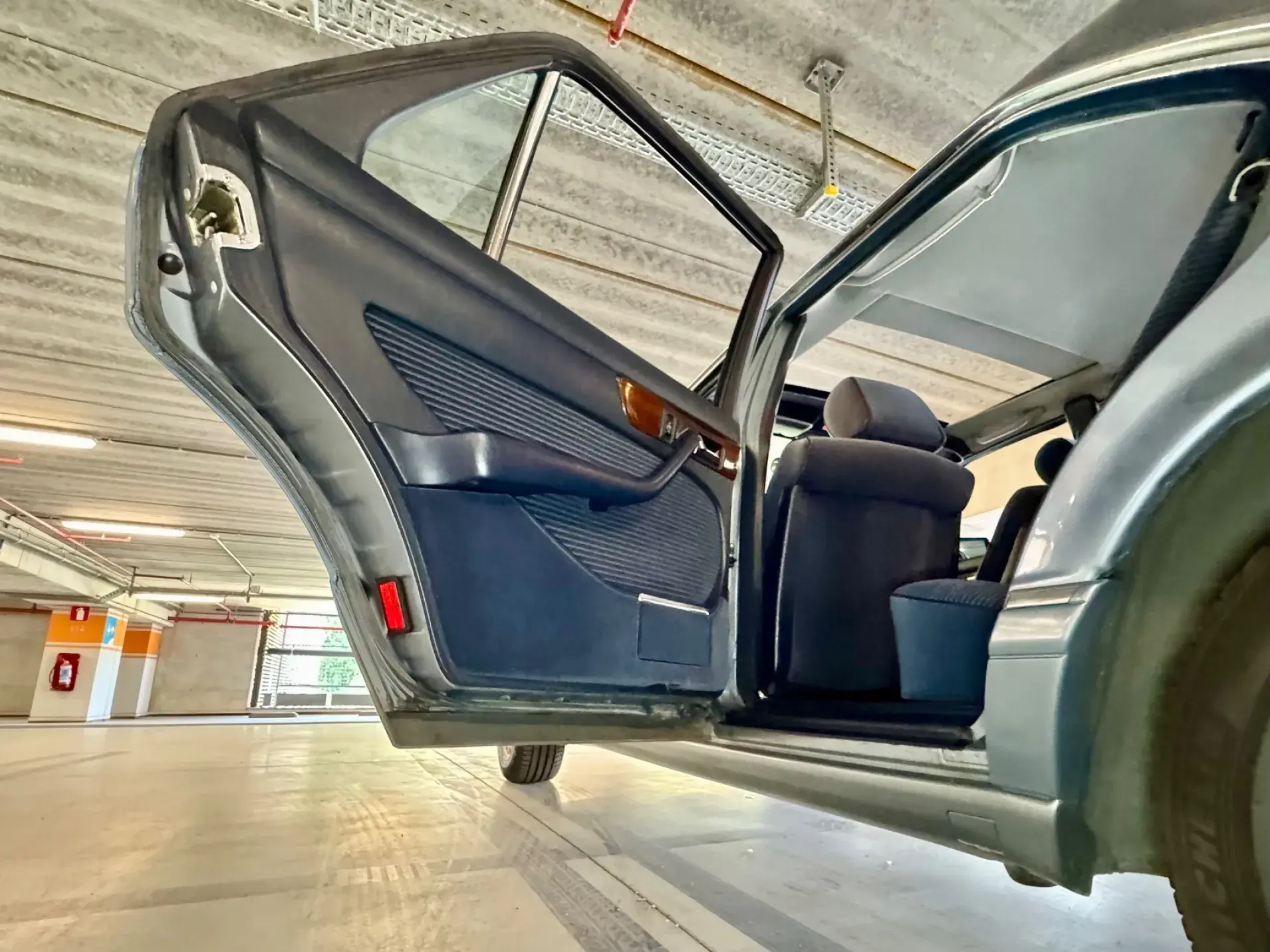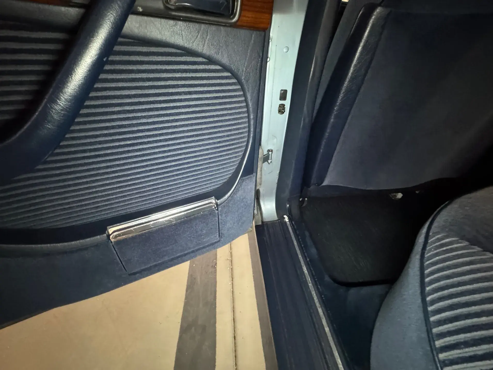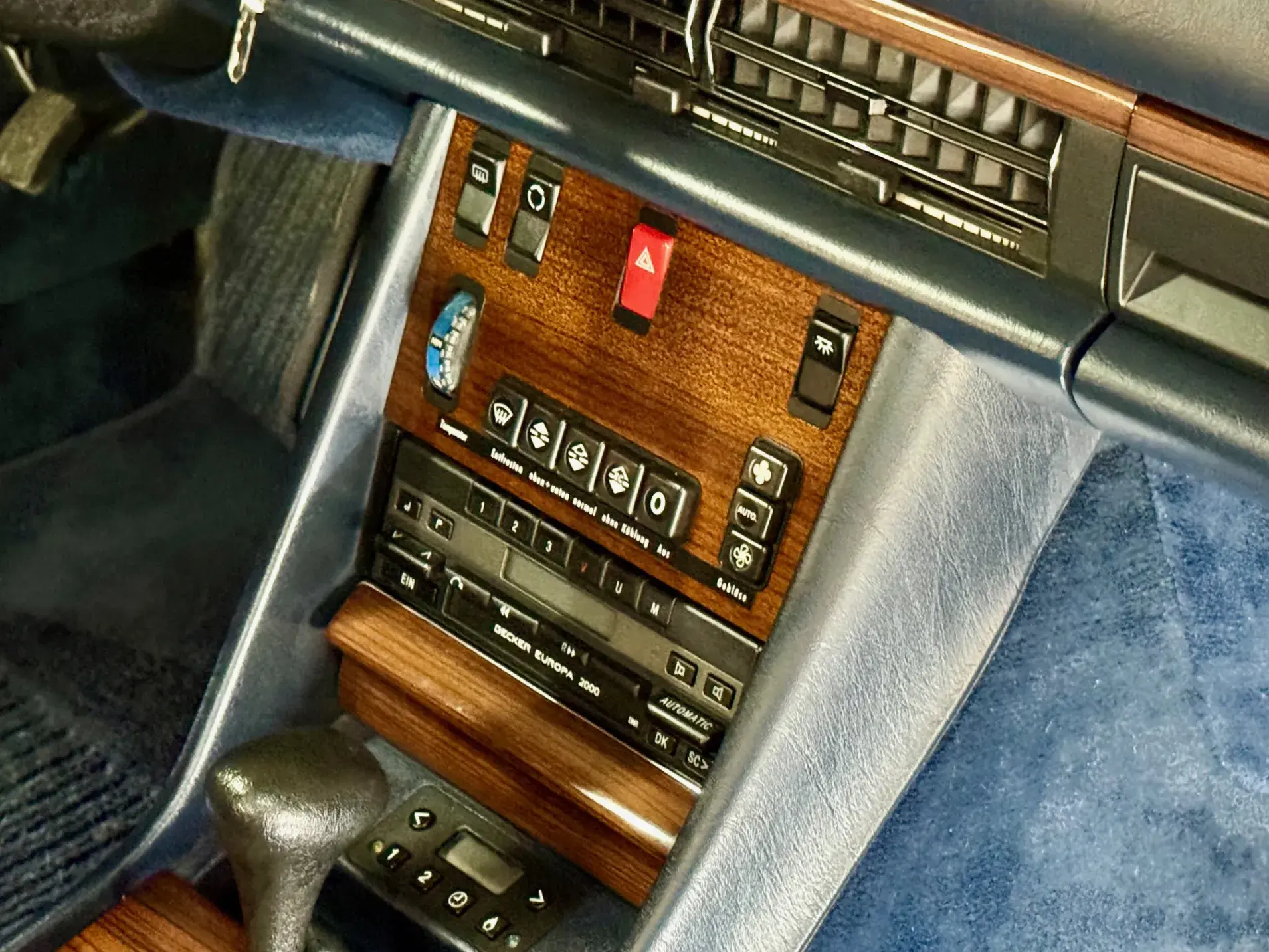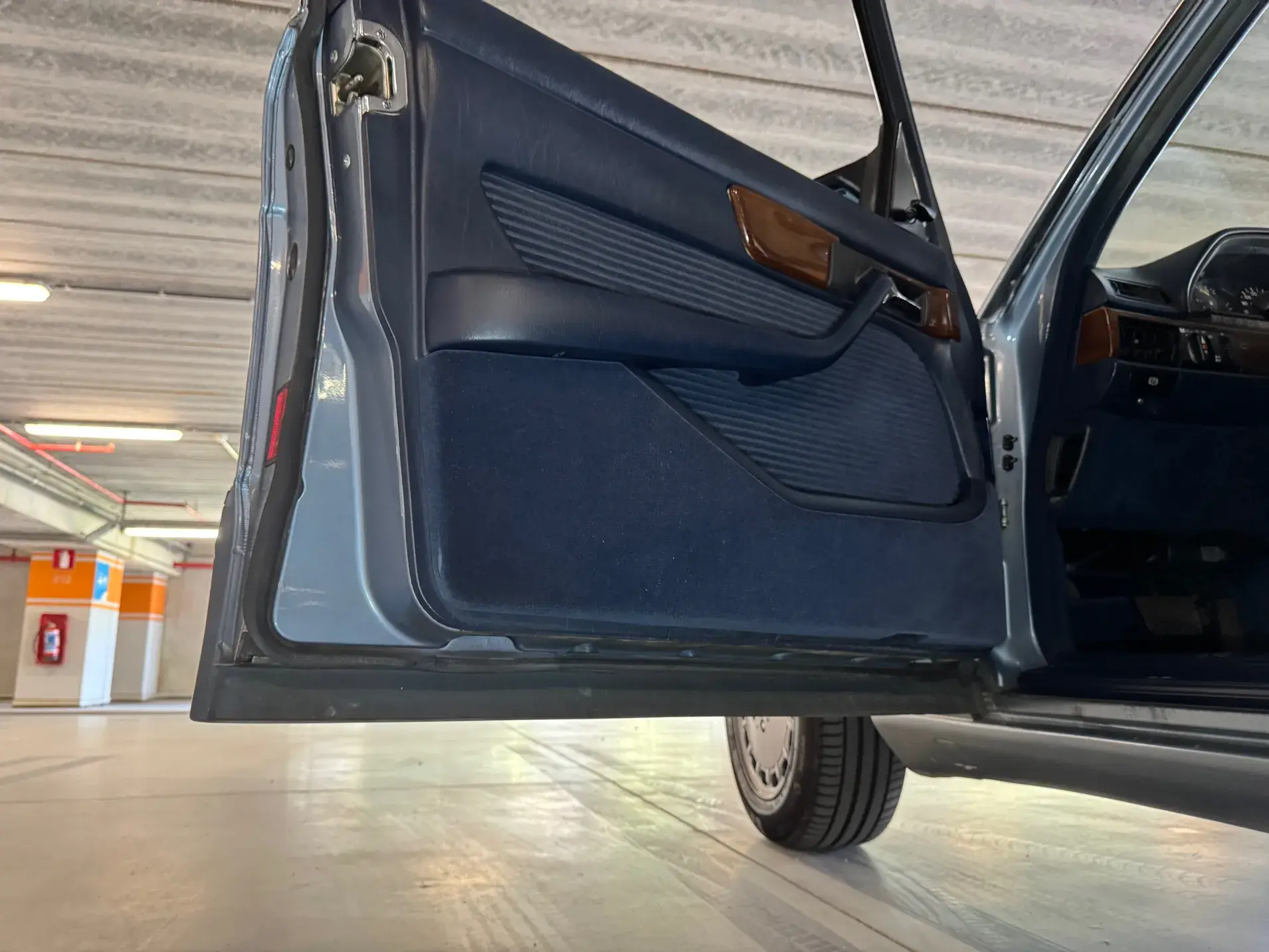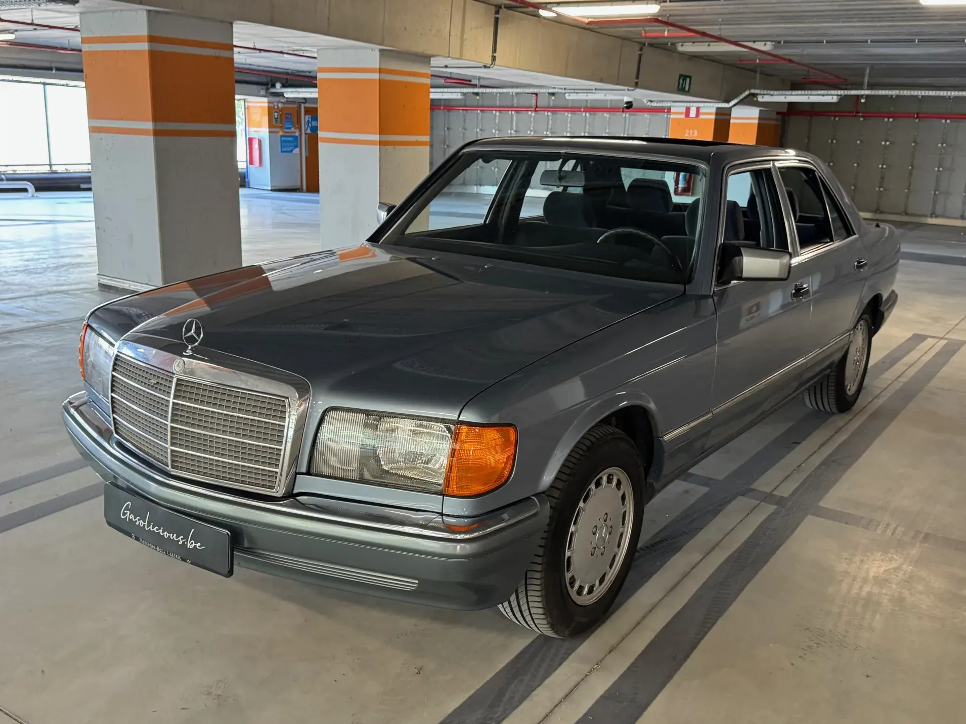 Notre Classe S W126 se distingue par une combinaison rare et élégante, dans un état d’origine très désirable. Diamantblau métallisé (code 355) et intérieur en velours bleu royal (code 972). L’ air conditionné est fonctionnel.