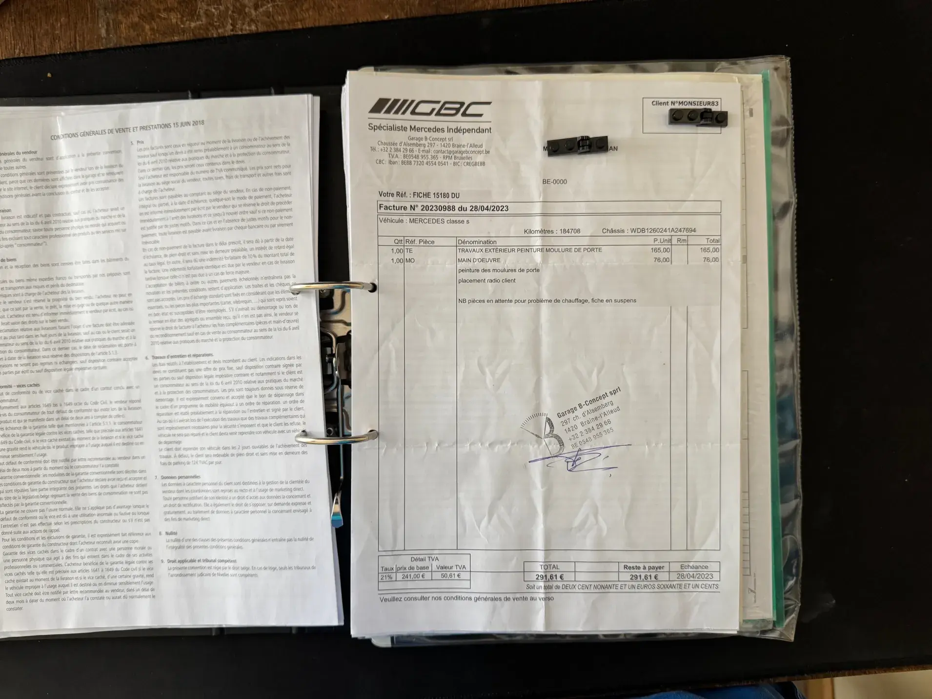 Toute la littérature de bord d’origine (carnet d’entretien, manuels, notices) est présente, l’historique détaillé est traçable depuis son premier jour.
