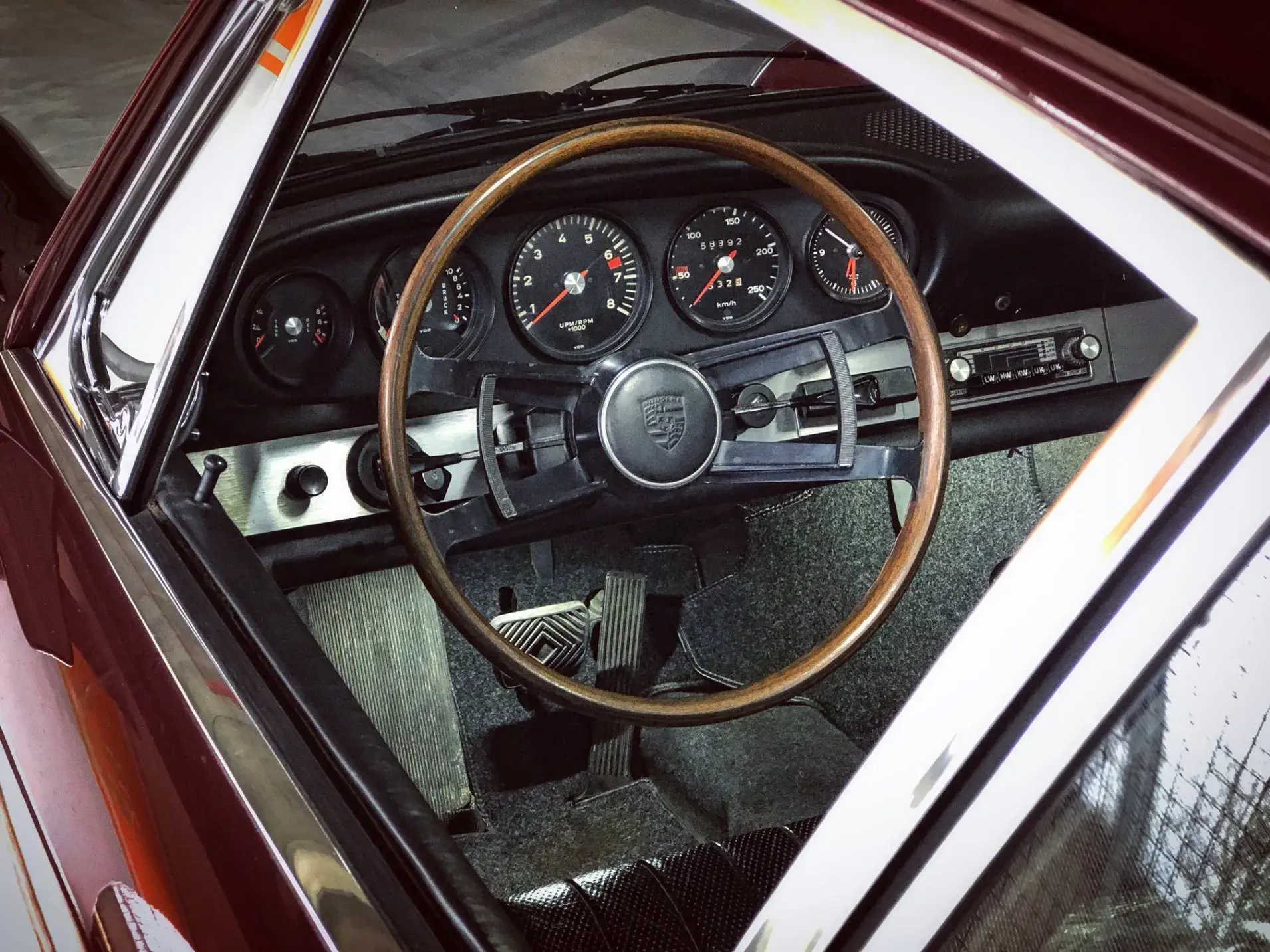 Cette 911 T roule et se comporte parfaitement (contrôle technique passé), est dans un bel état de présentation tant extérieur qu’intérieur. La patine de sa sellerie, de son volant lui apporte un indéniable supplément d’âme.