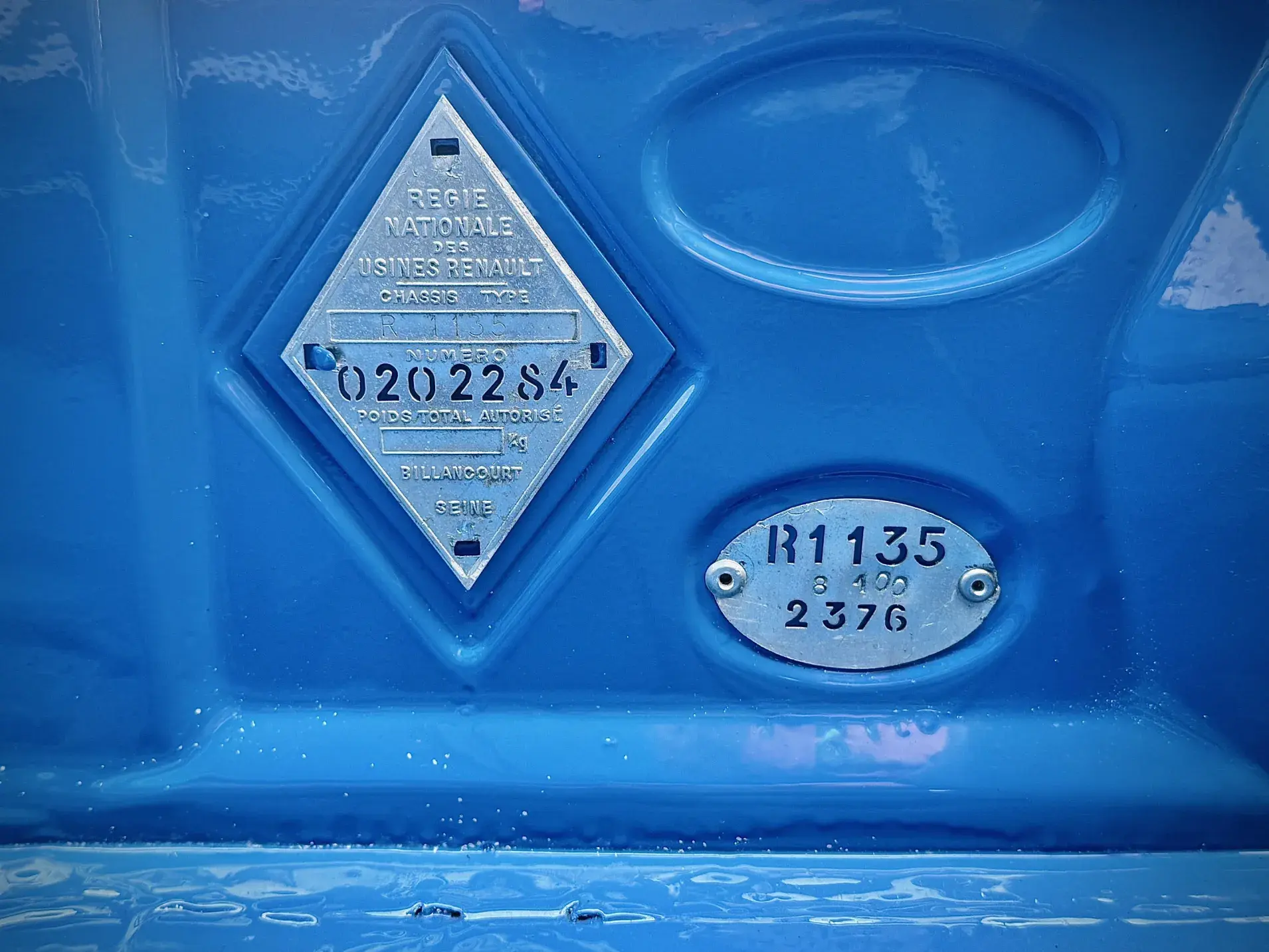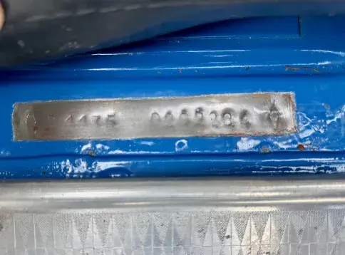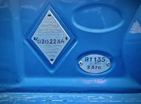 - Plaquettes d’identification (losange et ovale) présentes sur le tablier avant