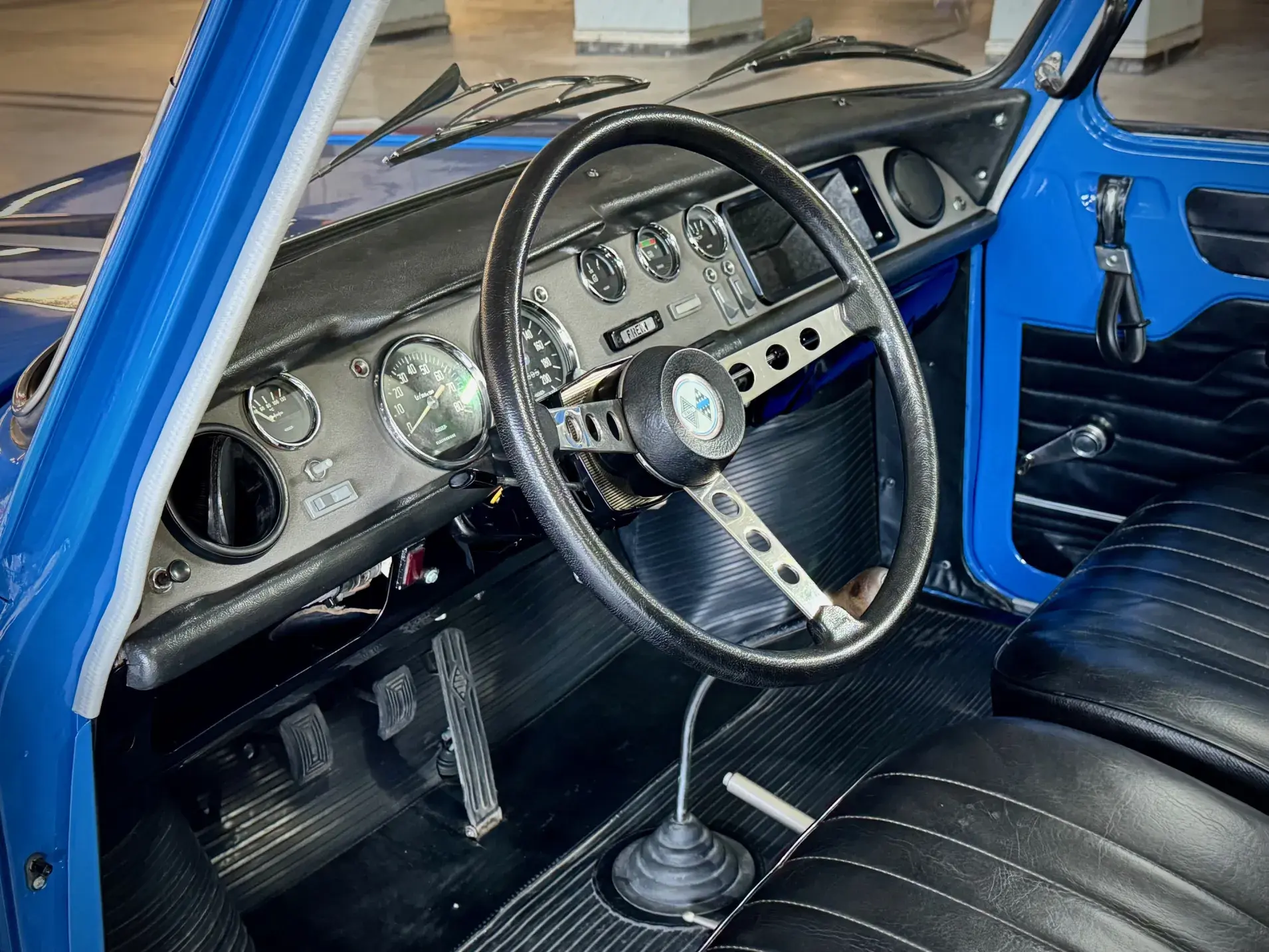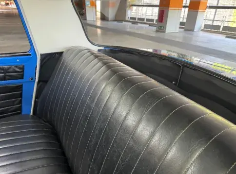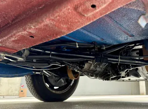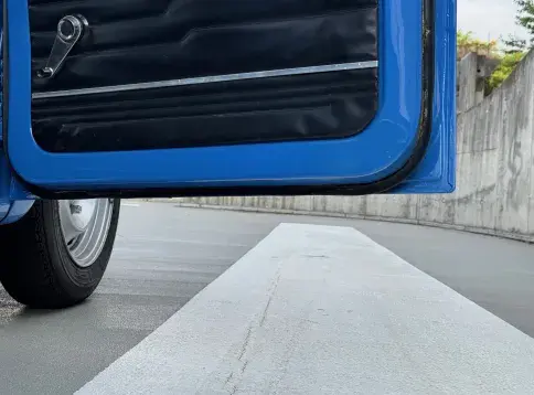 Sa conduite est pour le moins musclée lorsqu’on décide de se « cracher » dans les mains : quel caractère ! En revanche, comme toute voiture vintage en parfaite santé, il est possible — et surtout agréable — de musarder sur le couple. Sa restauration a été soignée, les liaisons au sol sont irréprochables, jusqu’à ses Michelin XZX 145 SR 15. Résultat : on en vient à apprécier les routes pavées, les ralentisseurs et autres imperfections de la chaussée, avalées avec confort et sérénité.