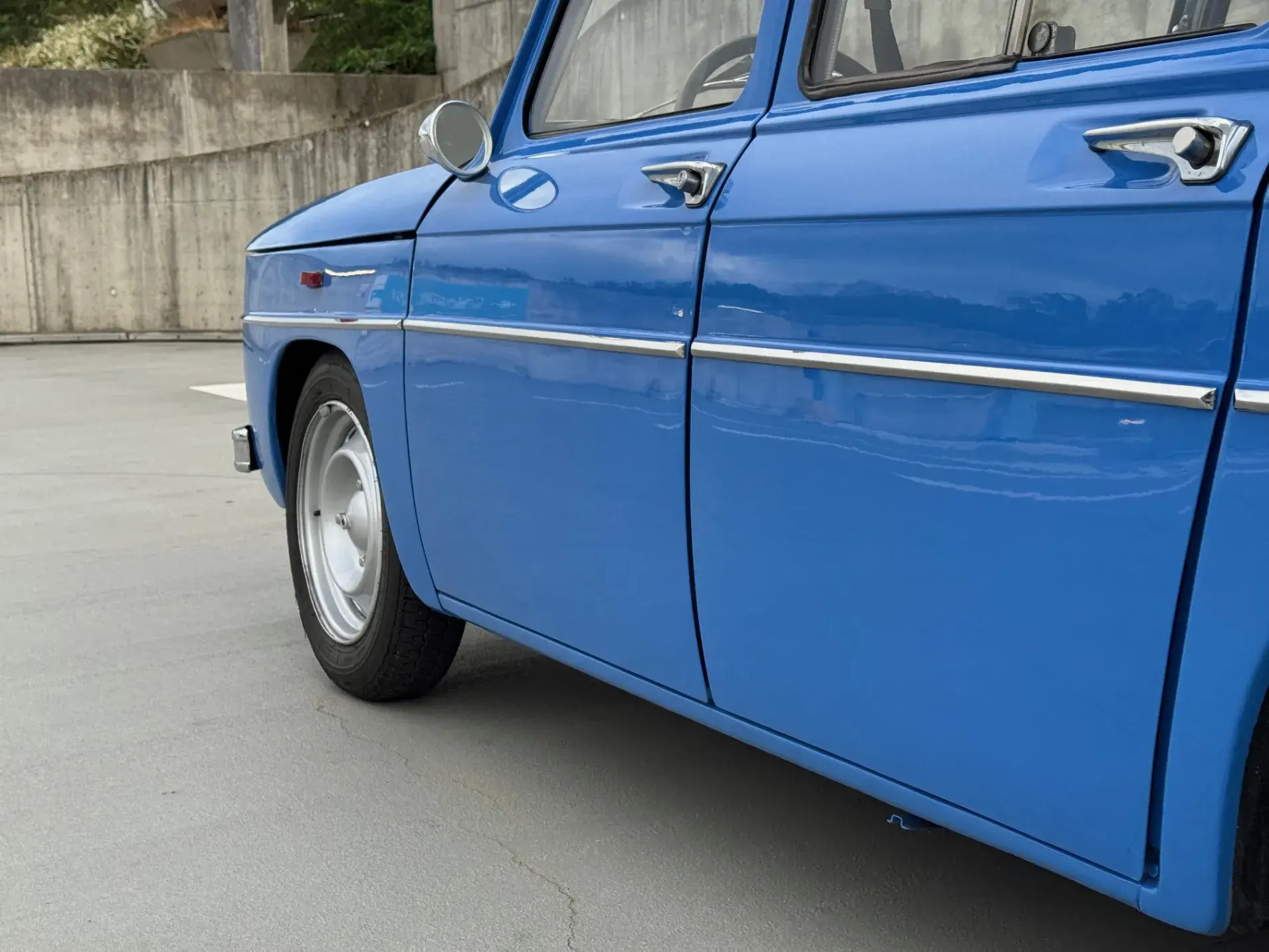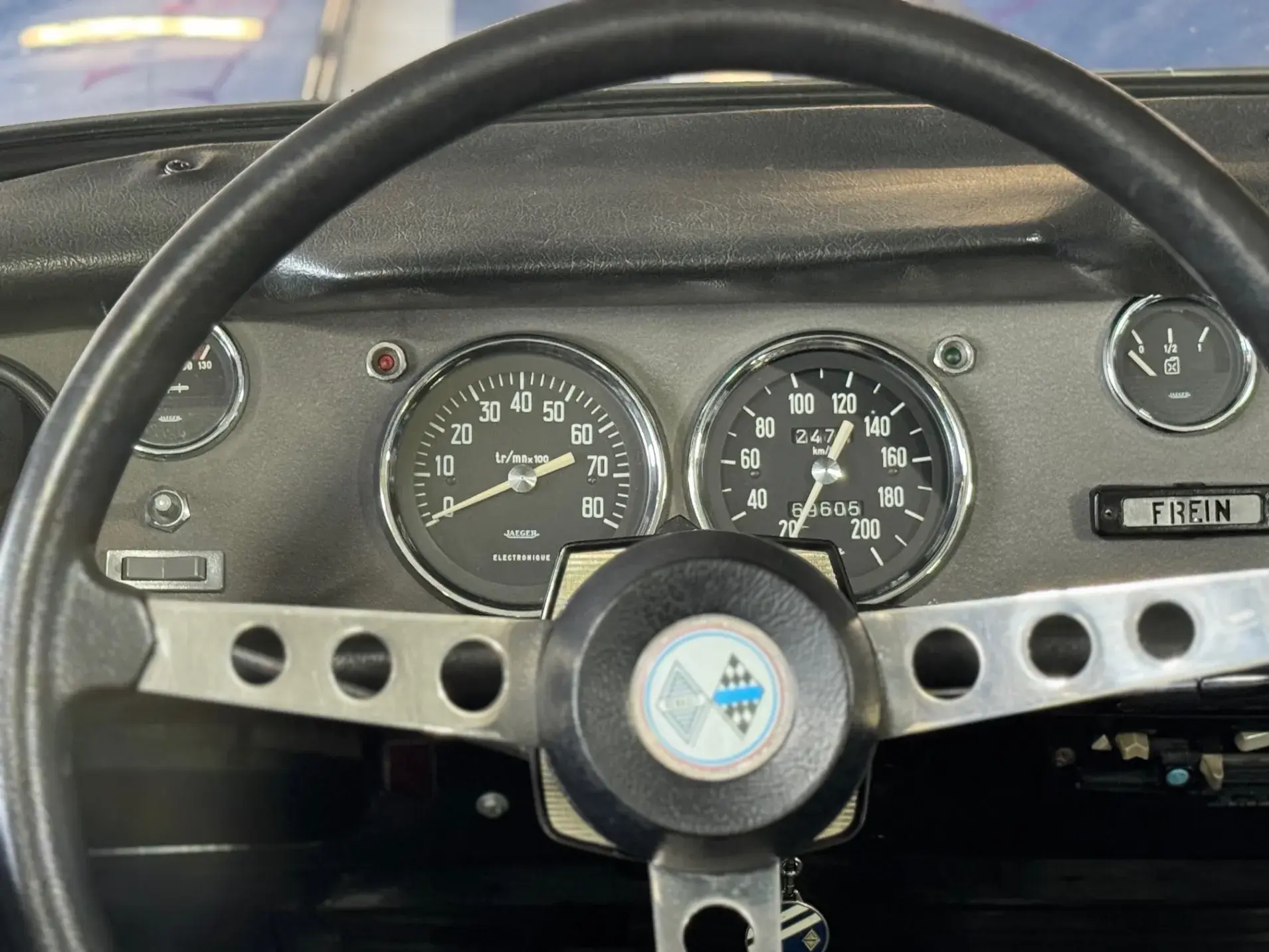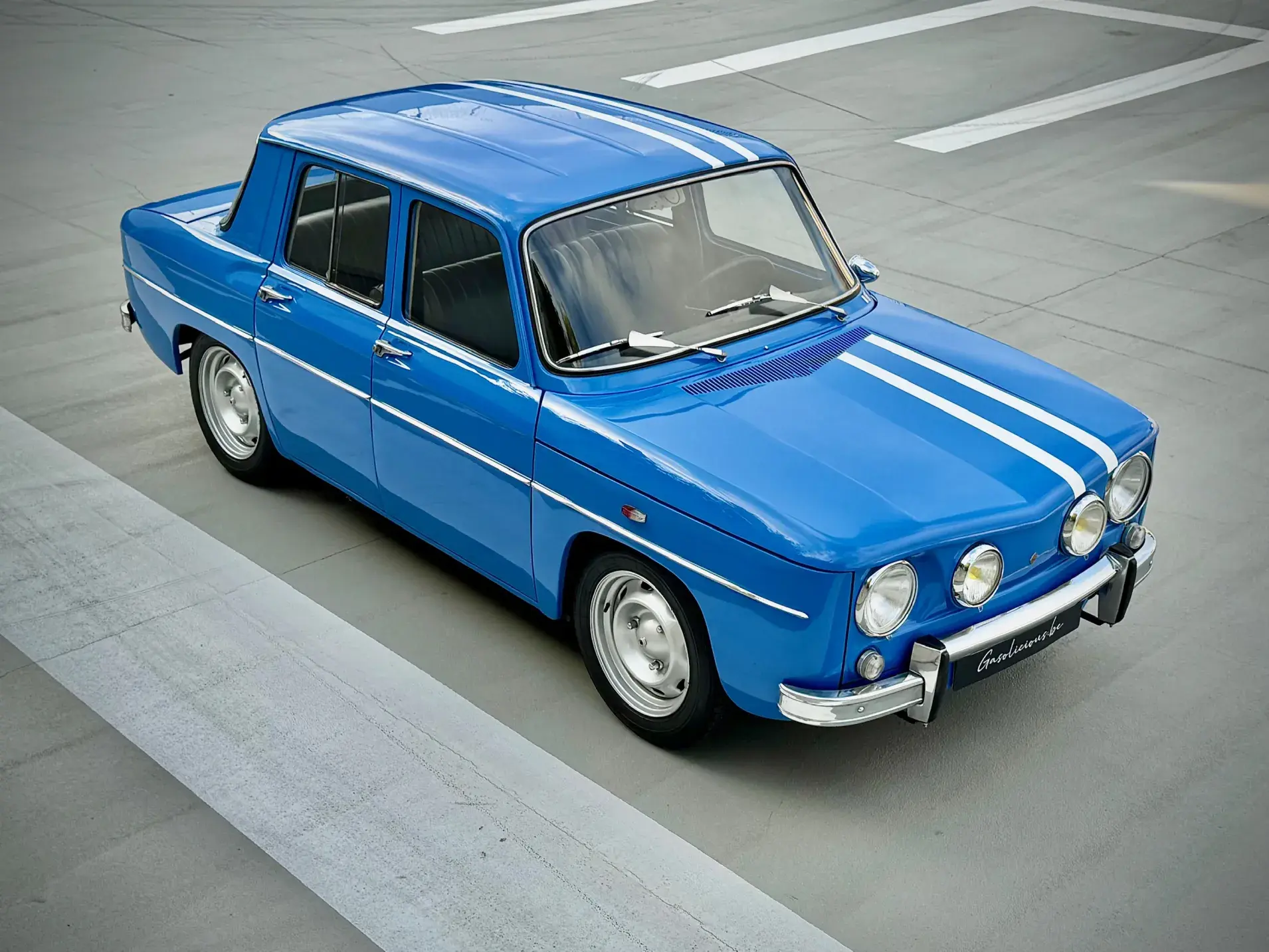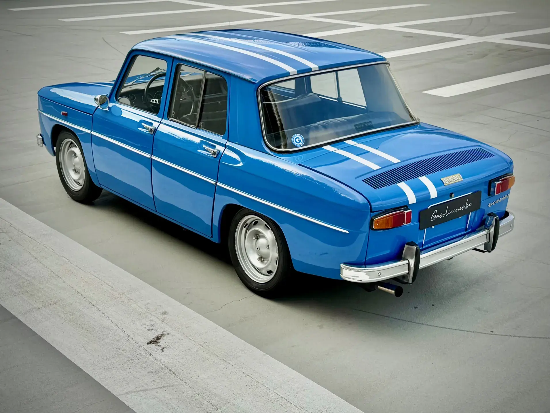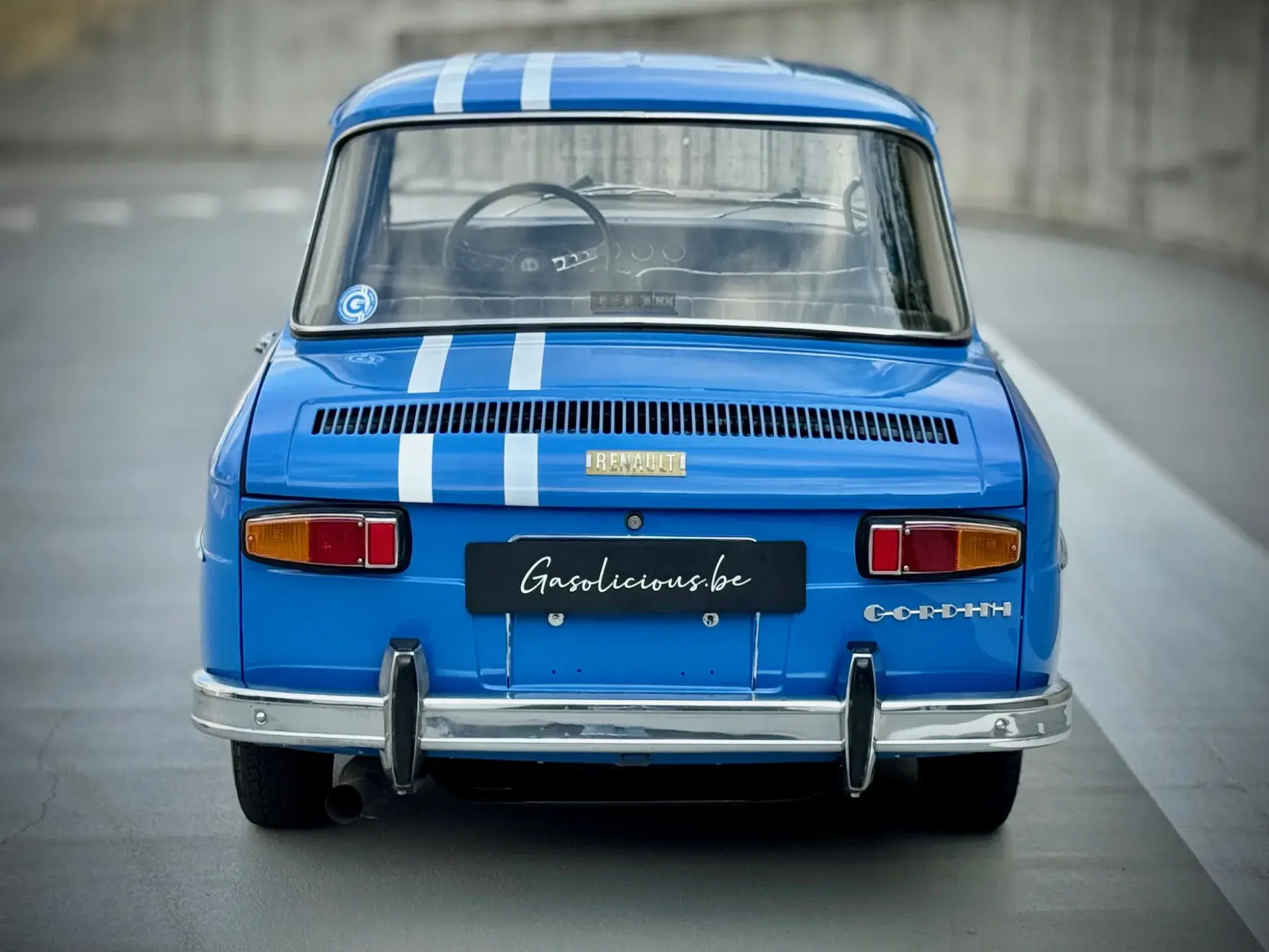 Notre Renault 8 Gordini de mai 1967 se présente dans sa configuration d'origine, dotée du légendaire moteur 1255 cm³ associé à la boîte 5 rapports, et alimentée par deux carburateurs double corps Weber 40 DCOE, jantes tôle 15" et volant Quillery !