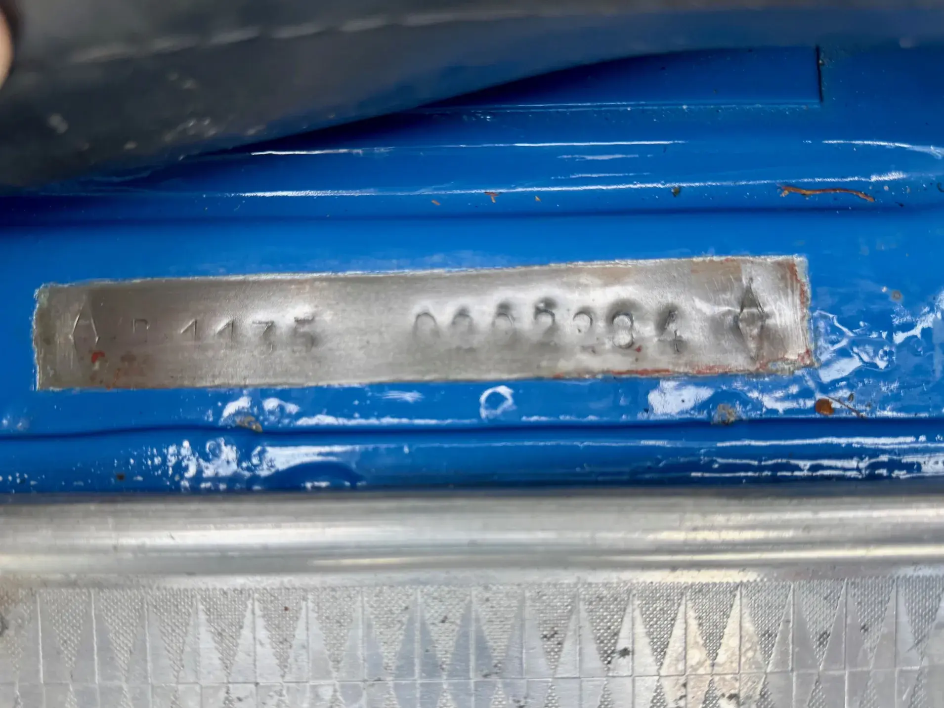 Plaquettes d’identification (losange et ovale) présentes sur le tablier avant