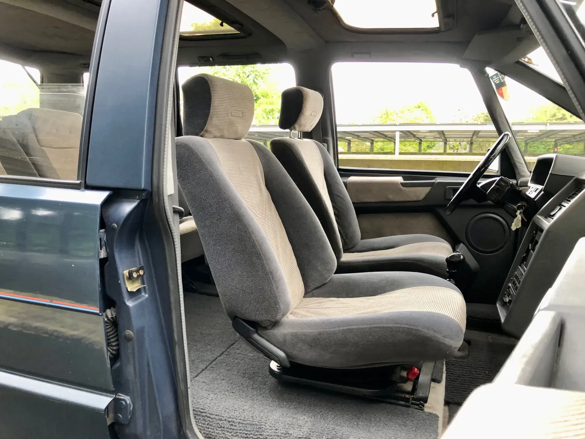 Renault Espace 1 ... voilà un véhicule que plus aucun amateur averti ne connaisse pas. Faut-il encore le présenter, raconter sa genèse... non ! Notre exemplaire exemplaire totalise que 162.000 km, une finition DX comprenant entre autre les superbes jantes alu et le double toit ouvrant qui le caractérise, quel bond dans les années 80. Prendre son volant sans émotions n'est pas possible, authentique capsule temporelle elle vous transporte ...