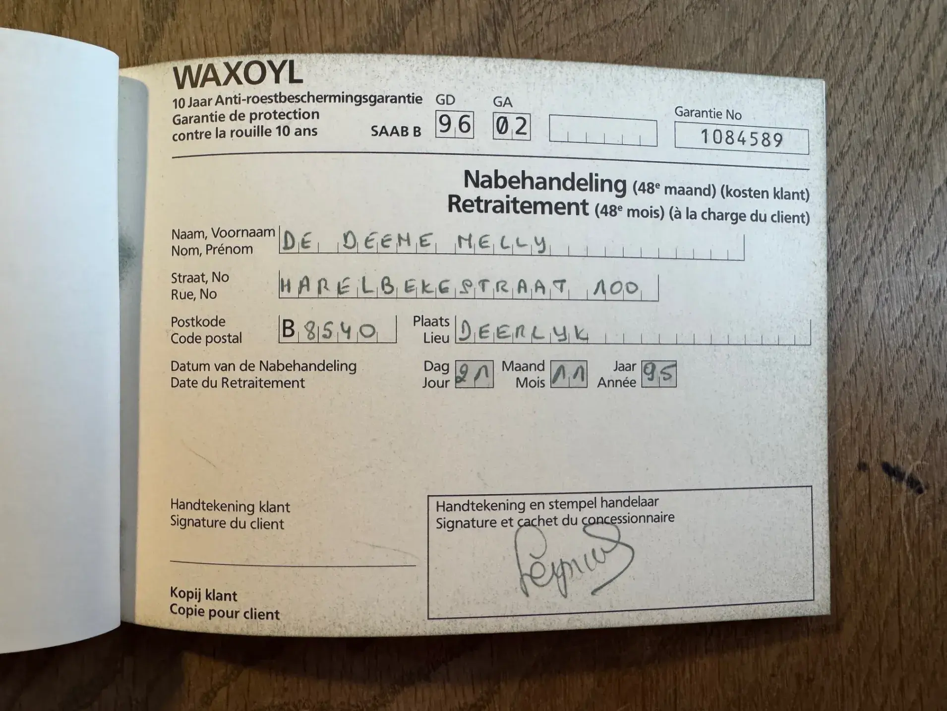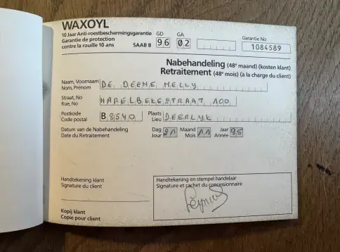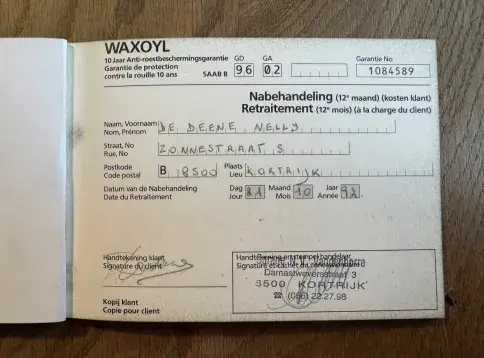 Son kilométrage est scrupuleusement documenté avec 33 relevés kilométriques. La voiture n'a jamais été restaurée et conserve son carnet de garantie anti-corrosion de 10 ans tamponné. Toute la documentation originale est incluse, soigneusement rangée dans sa pochette en cuir d'origine.